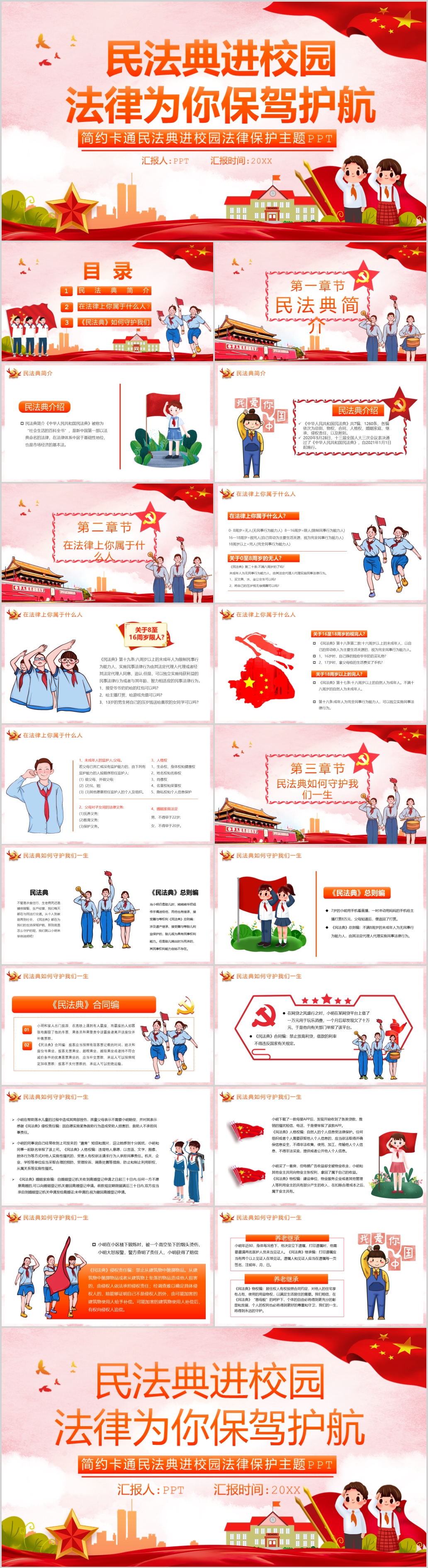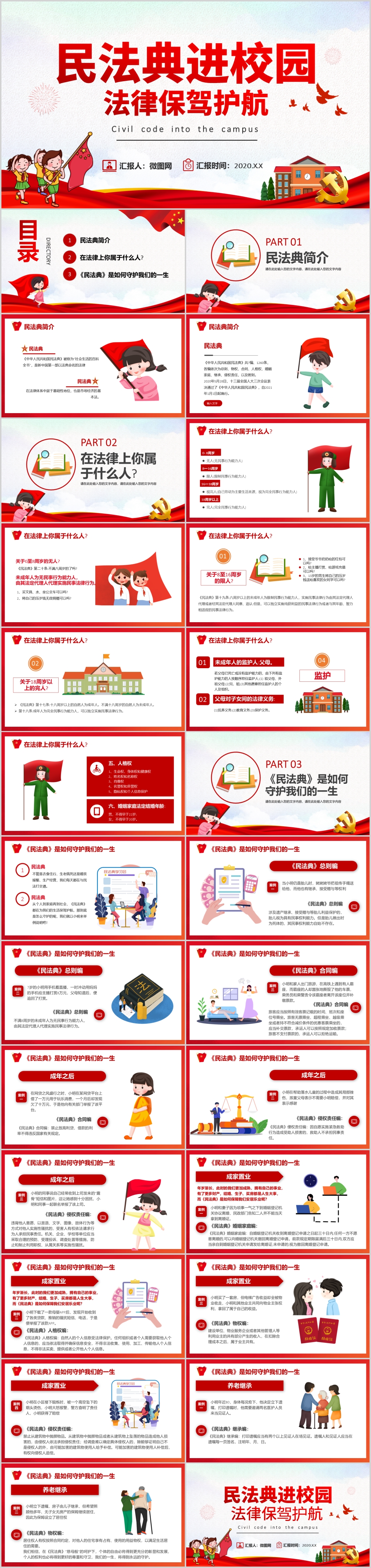 学习教育机构民法典校园普法宣传主题模板班会PPT模板