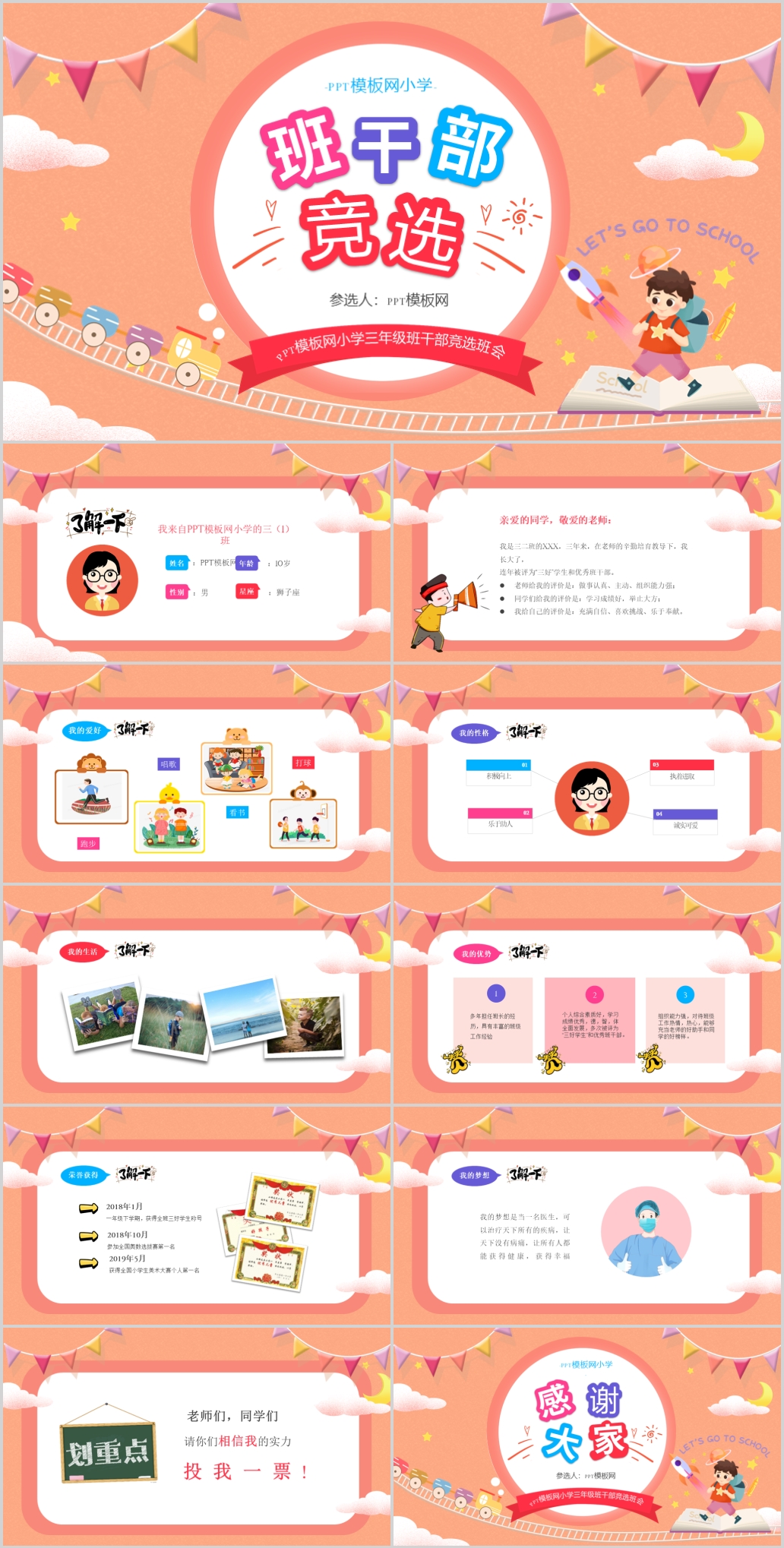 幼儿园小学生大队委竞选自我介绍班干部竞选PPT模板