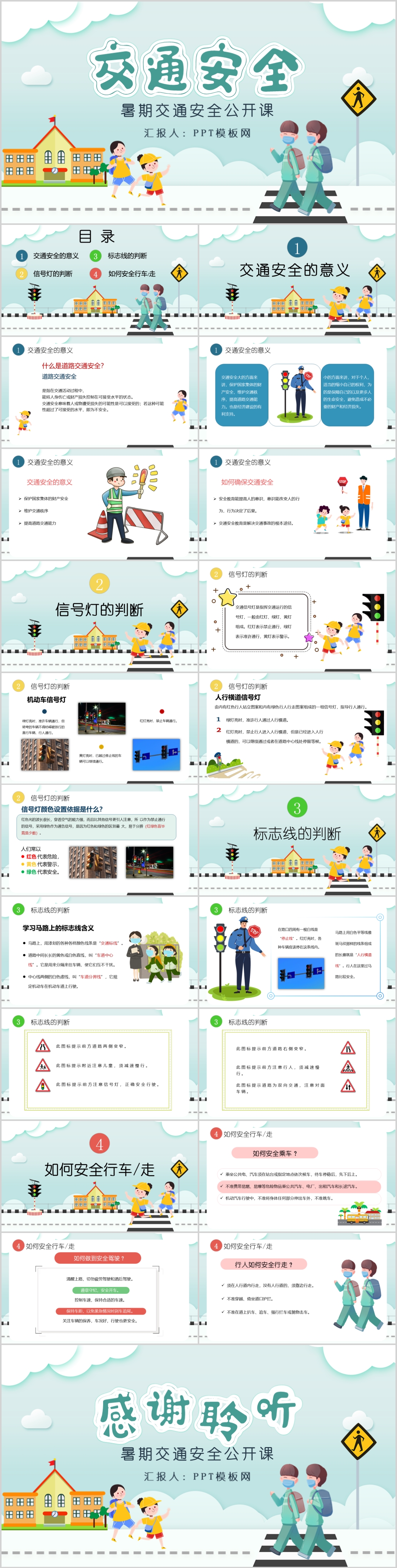 中小学生暑假寒假交通安全教育主题班会课件PPT模板