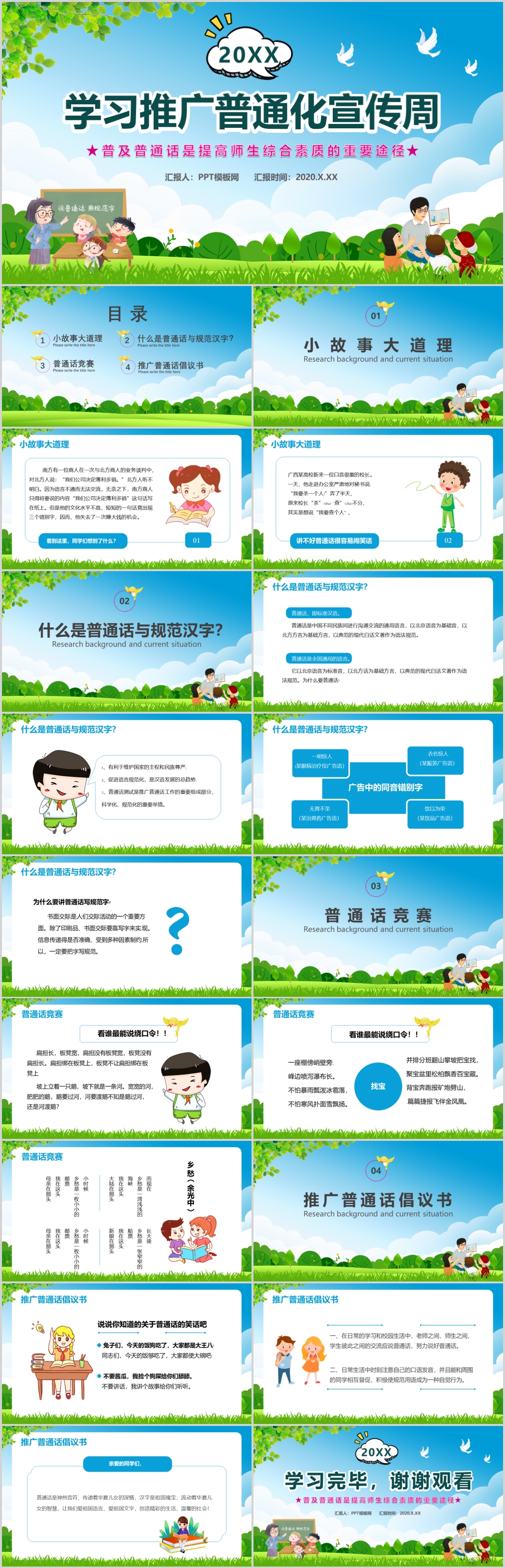 学校校园中小学生学习普通话宣传周班会主题PPT模板