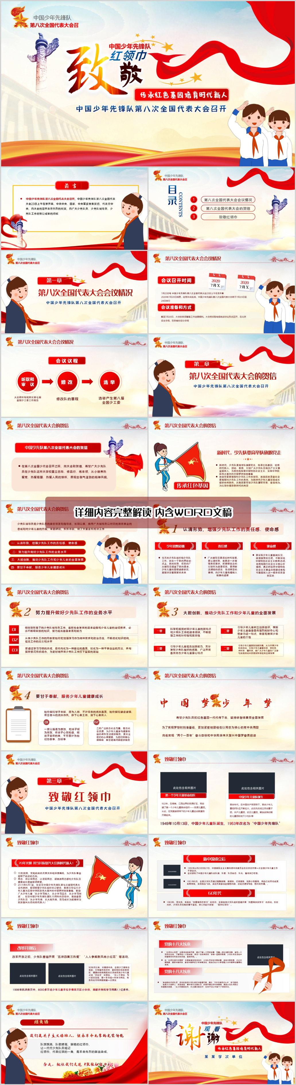 致敬红领巾中国少年先锋代表大会学校团委团支部共青团青年PPT模板(内含WO