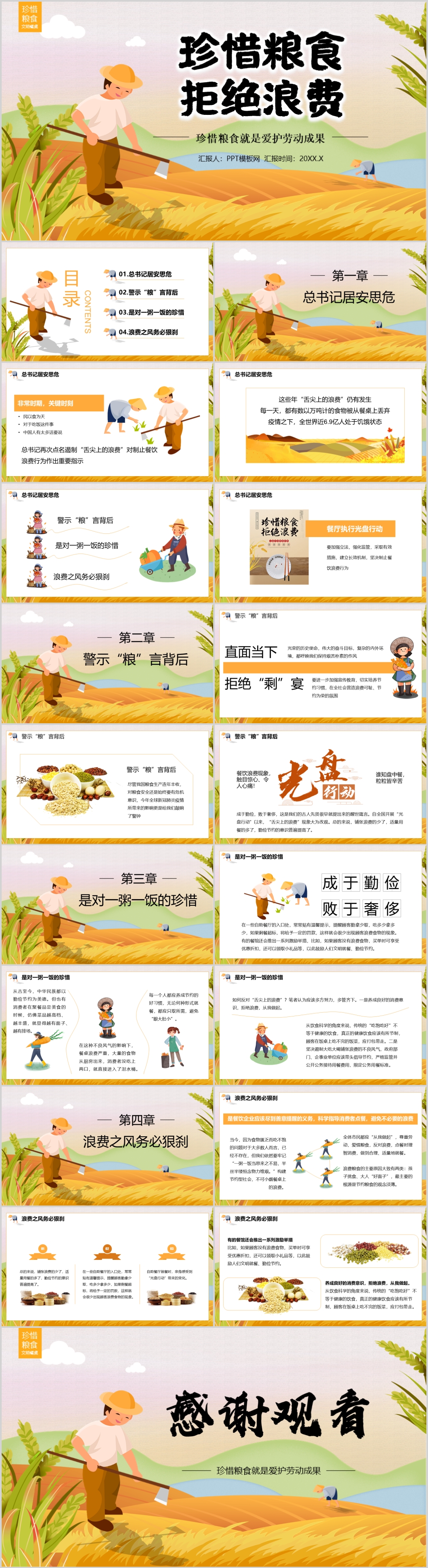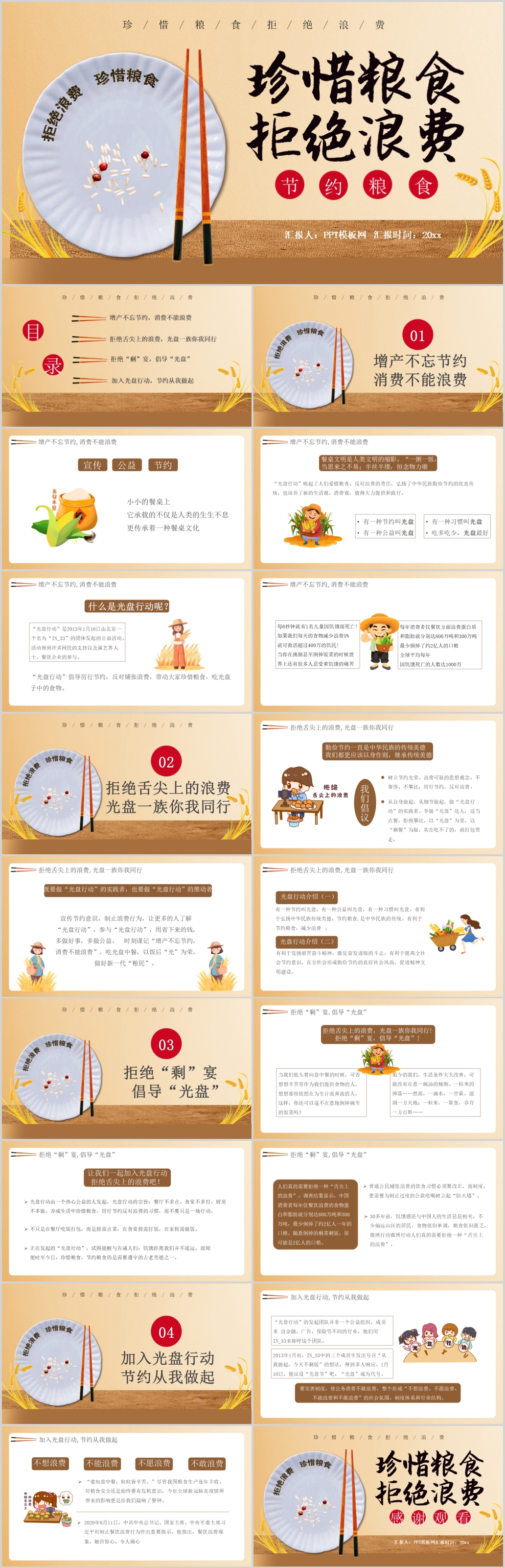 厉行节俭反对浪费坚决制止舌尖上的浪费光盘行动主题PPT模板(含WORD演讲稿)