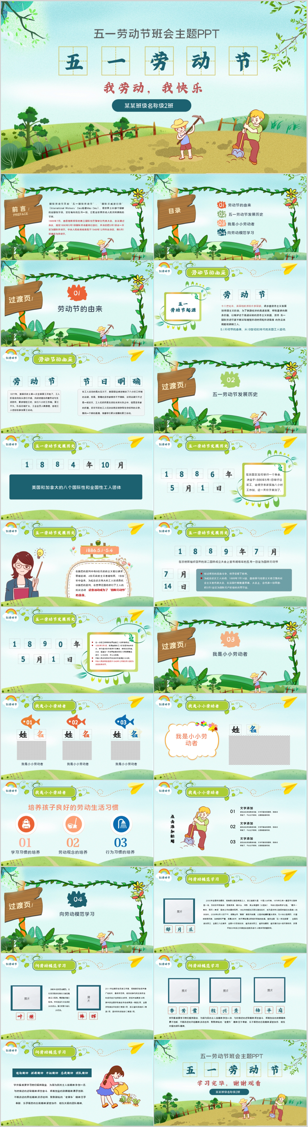 五一51PPT劳动节班会劳动光荣工会弘扬劳模精神PPT模板
