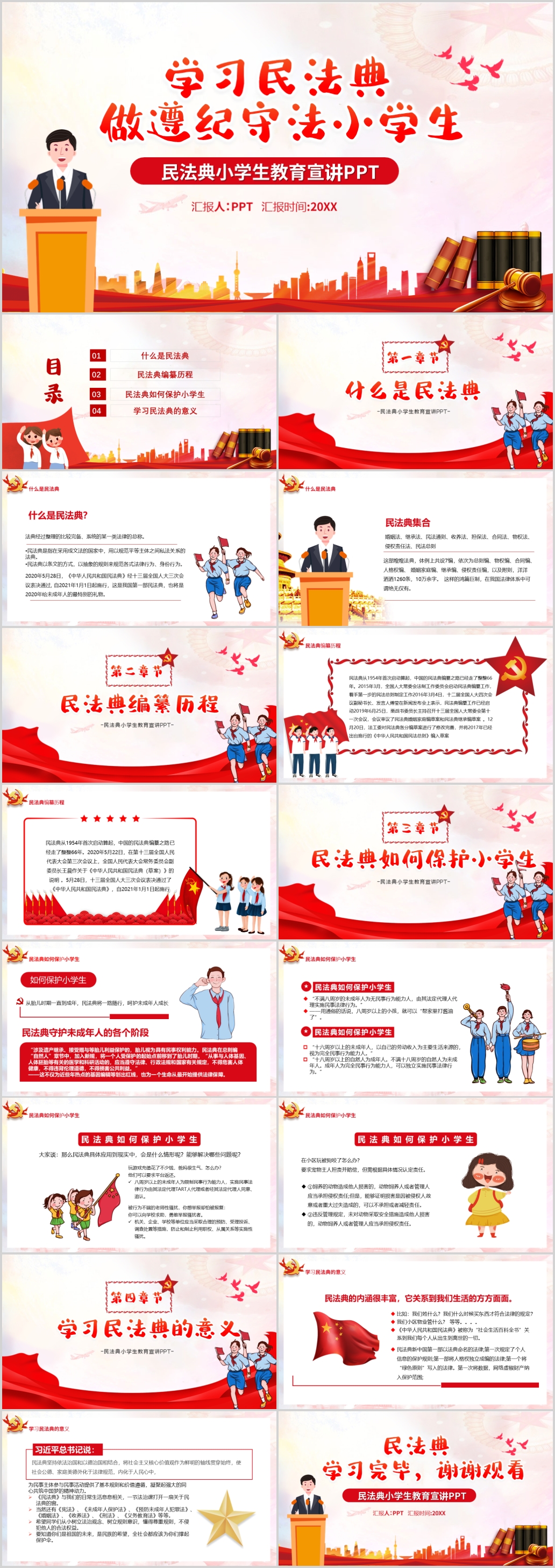 学习做遵纪守法小学生民法典教育宣讲主题PPT模板