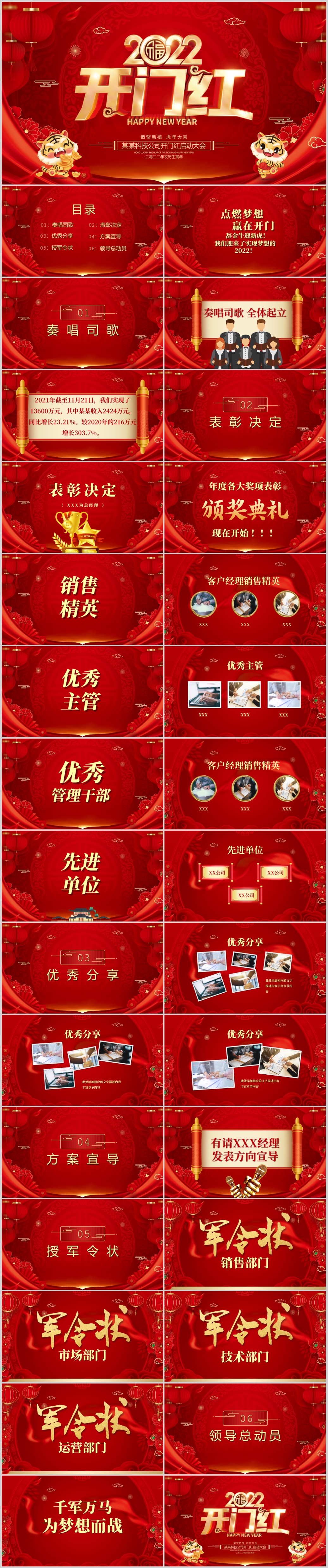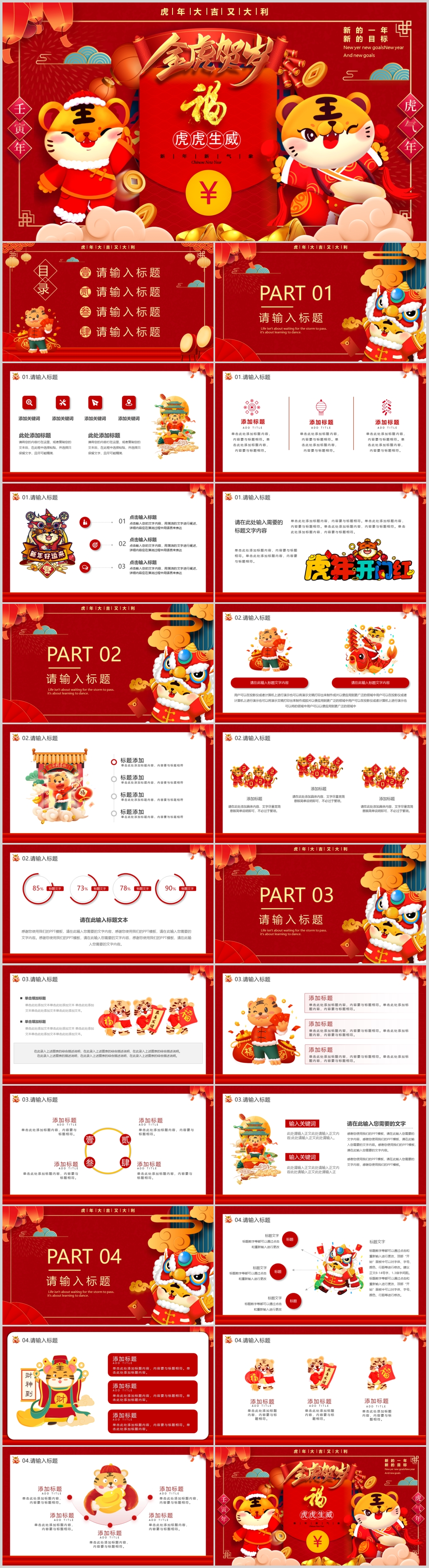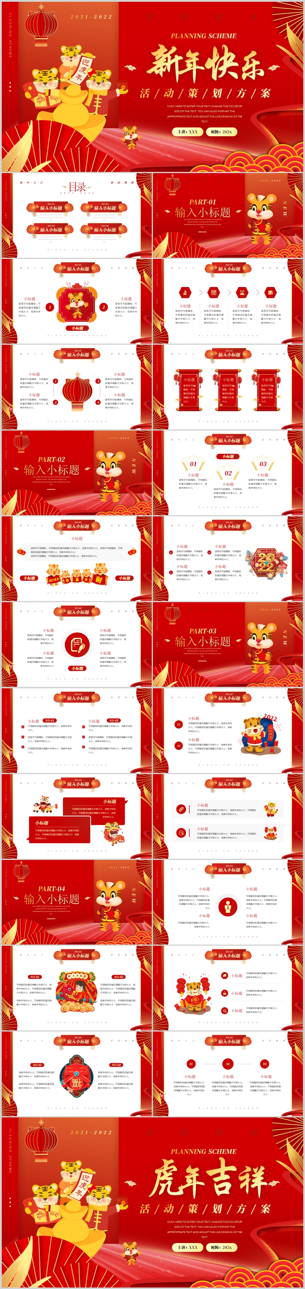 2022年虎年红色喜庆新年计划年终工作总结ppt模板