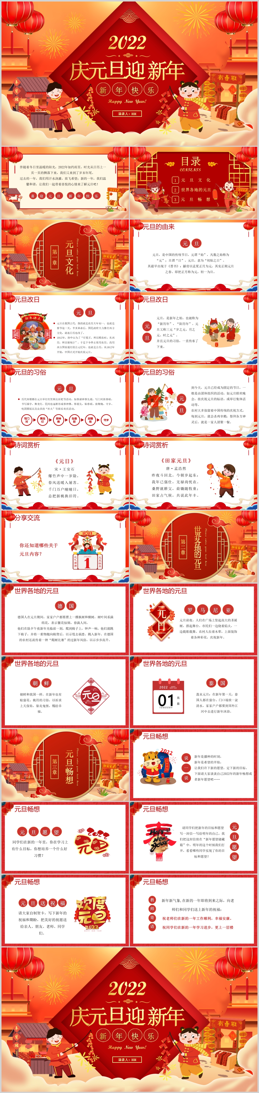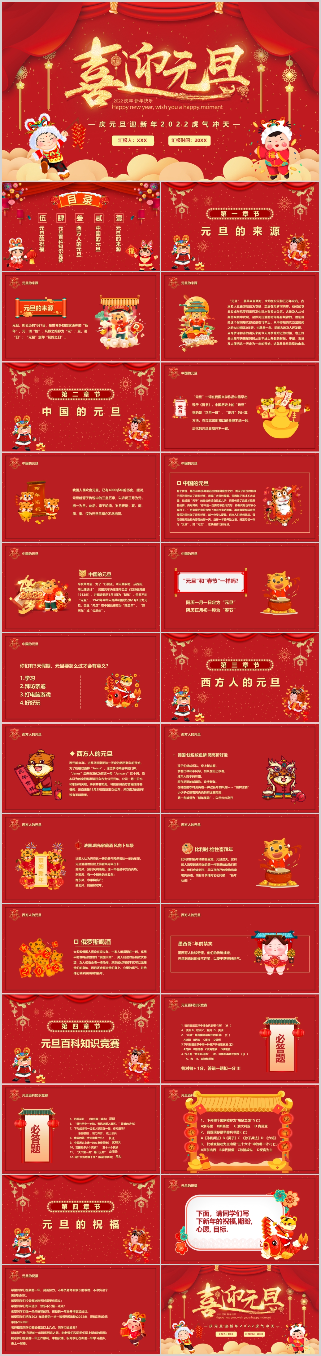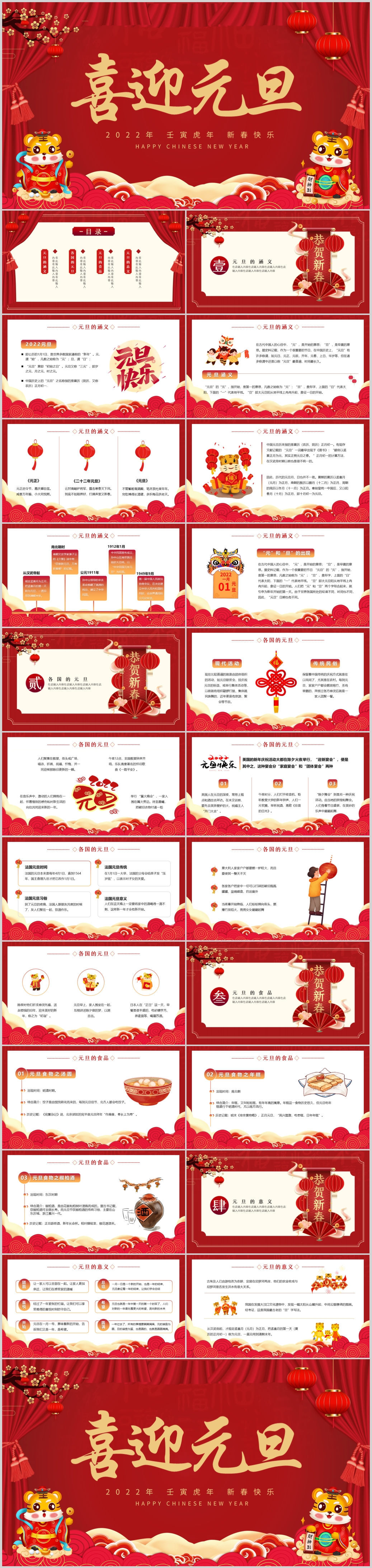 2022年虎年新年春节习俗元旦节主题班会PPT课件