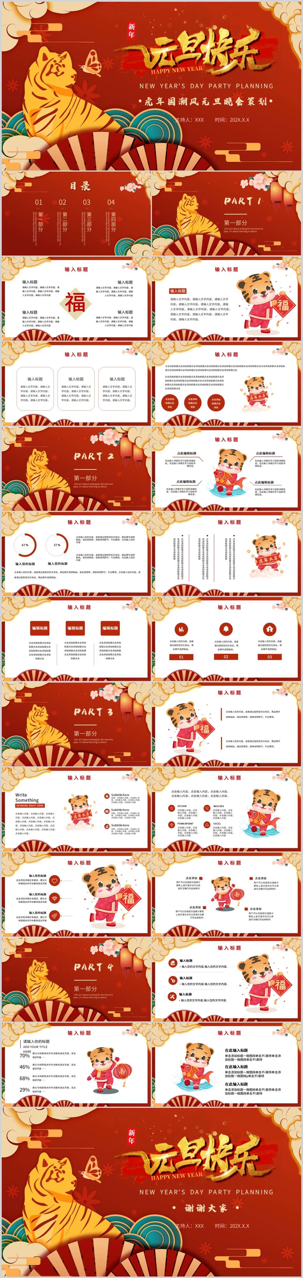 2022年虎年国潮风元旦晚会策划通用PPT模板