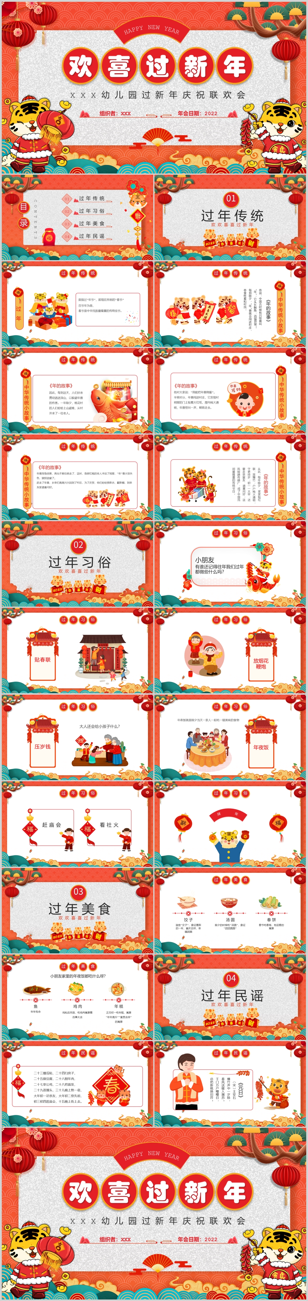 红色喜庆2022虎年年会新年春节元旦快乐联欢晚会ppt模板