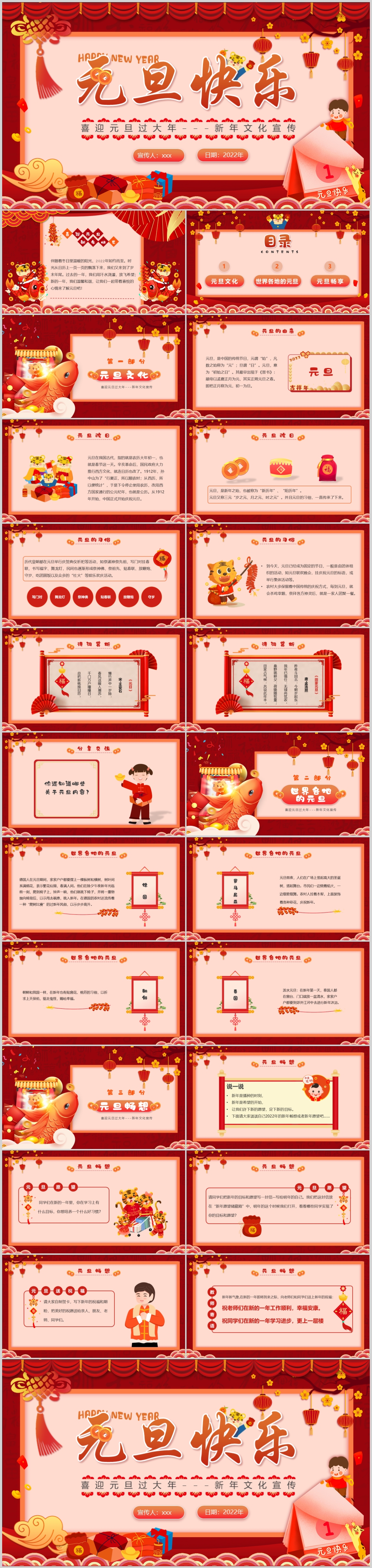 红色喜庆传统节日庆元旦晚会迎新年主题班会ppt模板