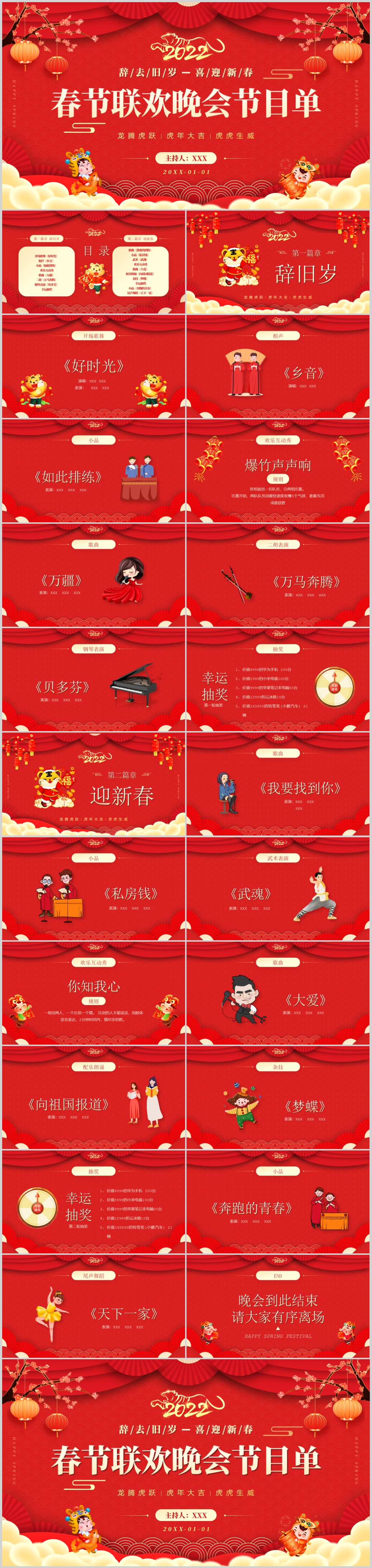 2022红色喜庆传统节日新年元旦春节联欢晚会活动节目单PPT模板