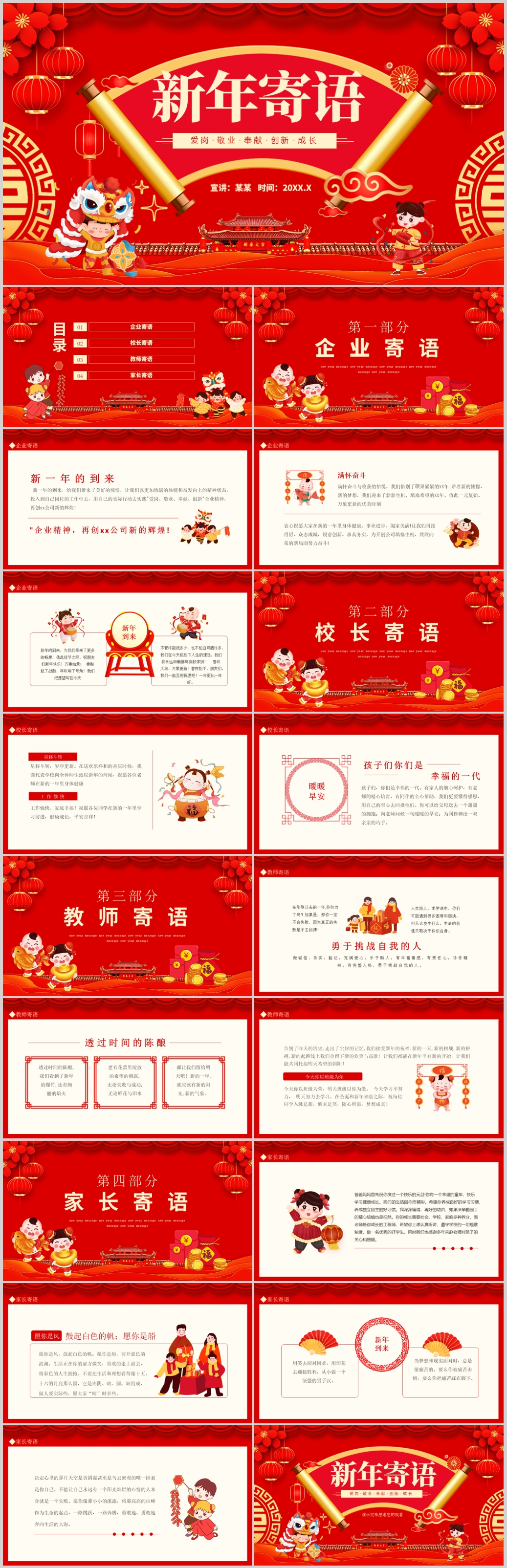 2022企业校园家长通用新年寄语祝福语主题PPT模板