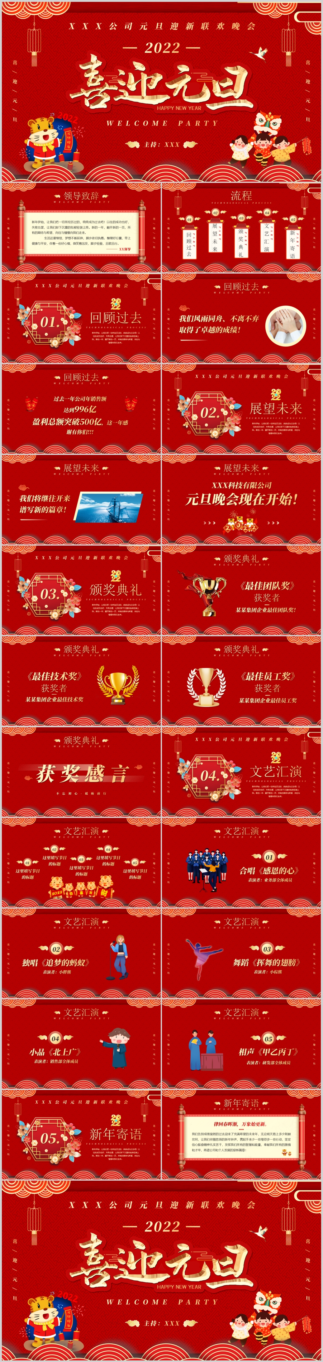 红色2022虎年年会新年快乐元旦主题班会春节联欢晚会ppt模板