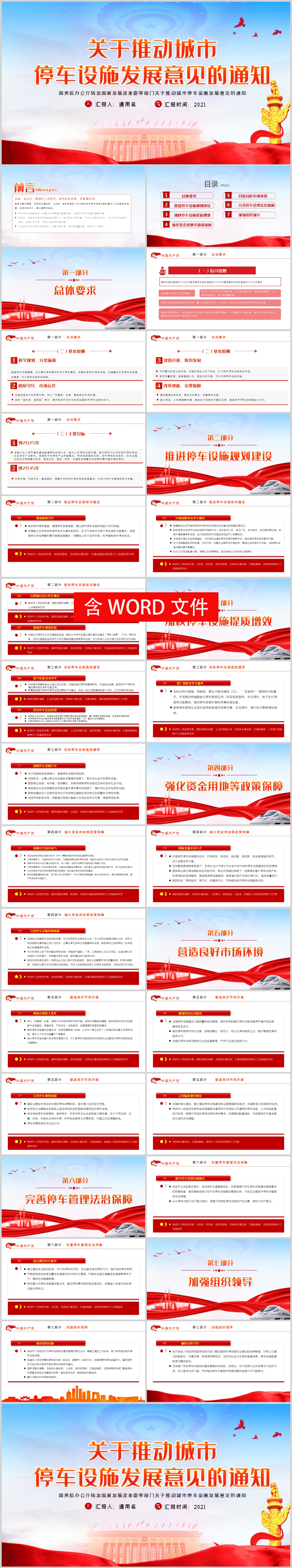 关于推动城市停车设施发展意见党建党课PPT《含word文件》