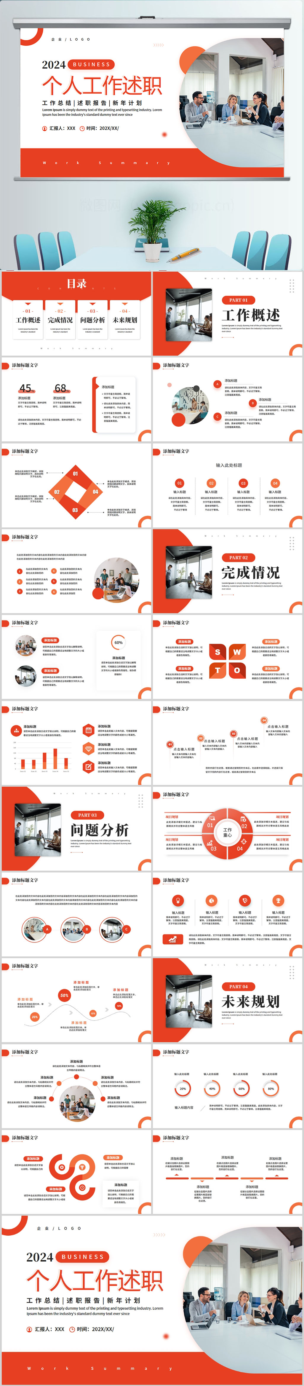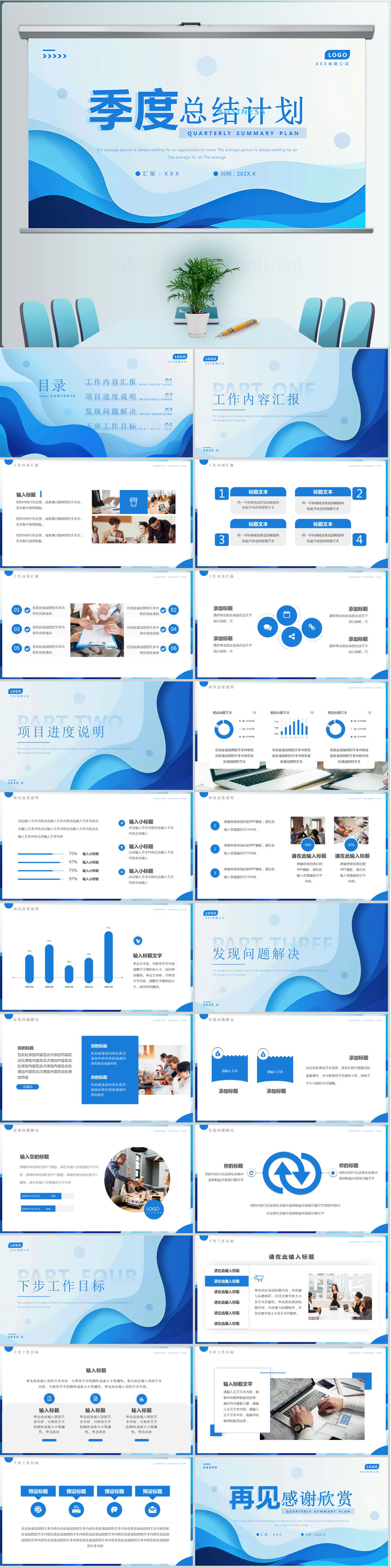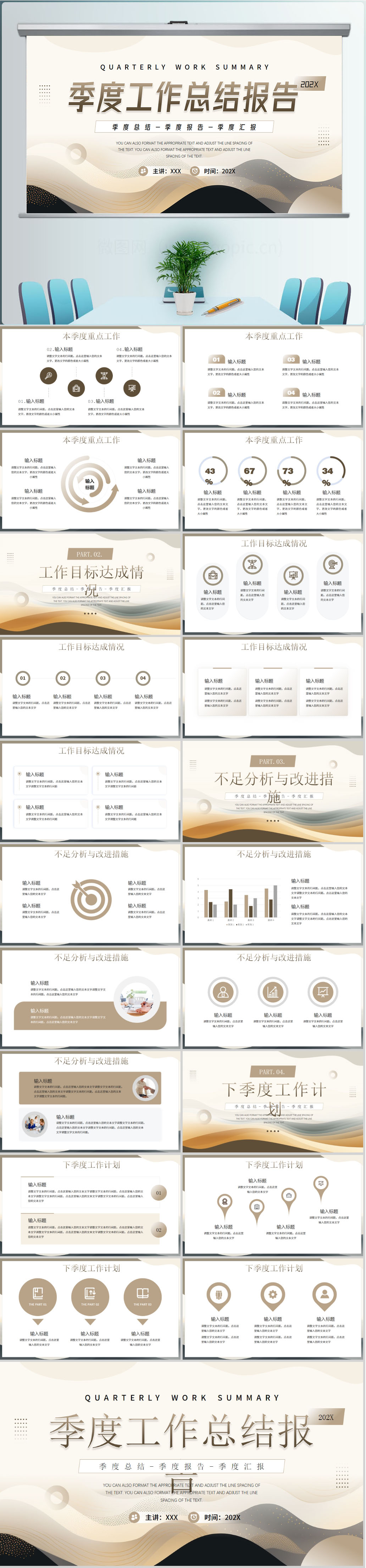 极简商务季度年度年终工作汇报总结ppt模板设计