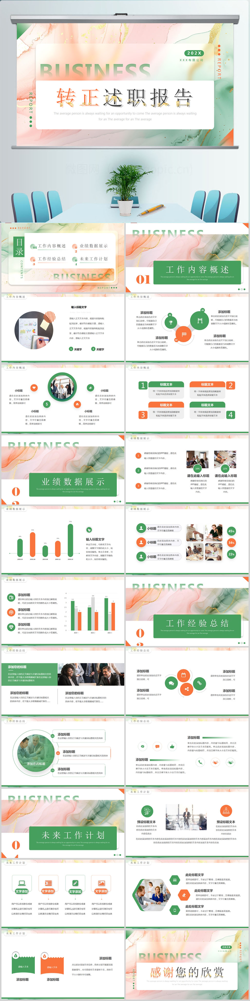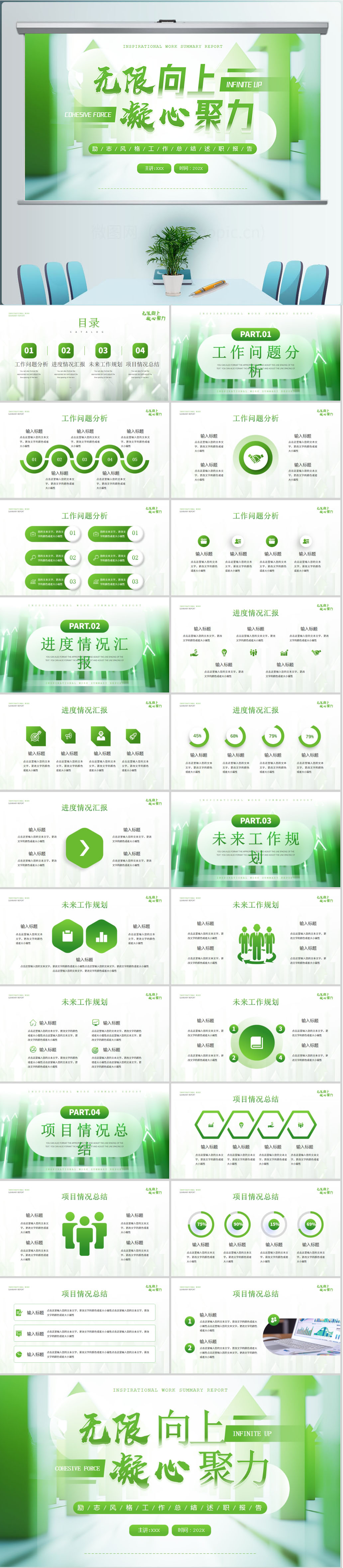 绿色商务季度年度年终工作汇报总结ppt模板设计