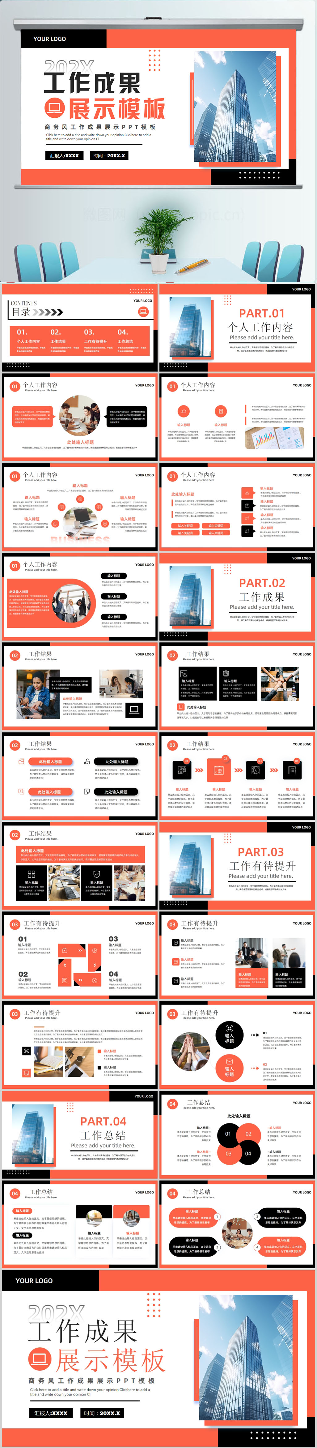 商务风工作成果展示介绍PPT模板设计