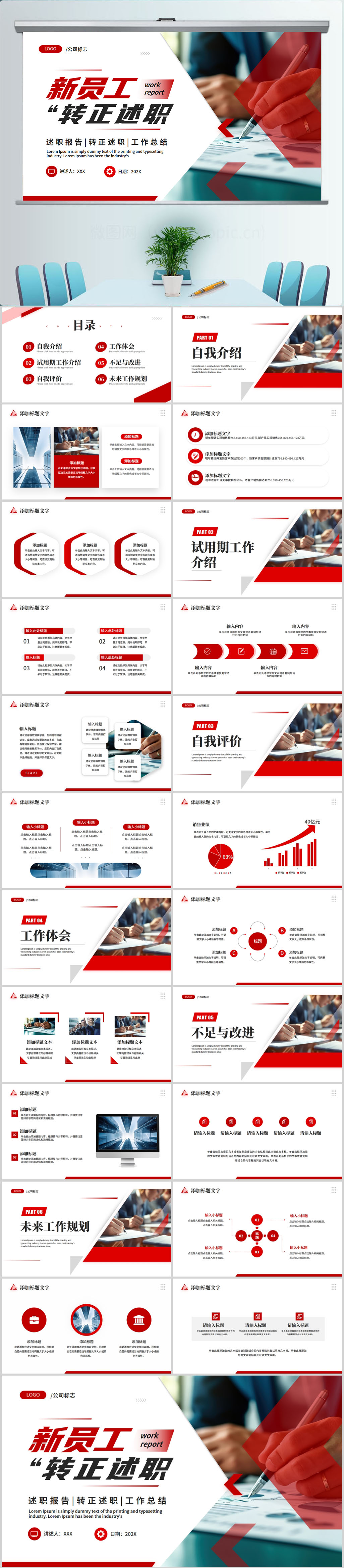 红色工作述职报告PPT模板设计