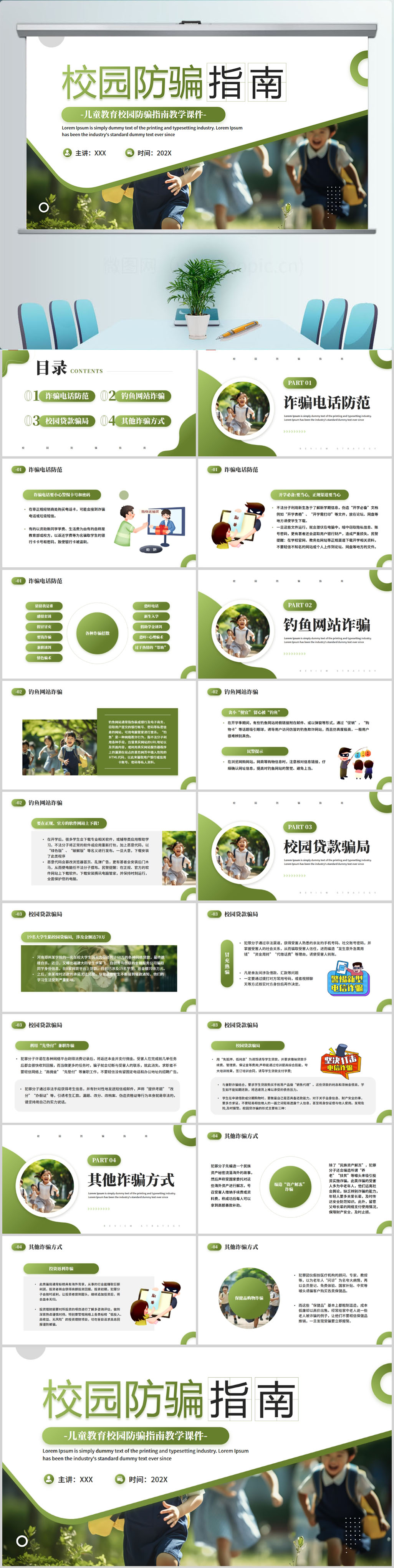 校园防骗指南动态PPT模板设计