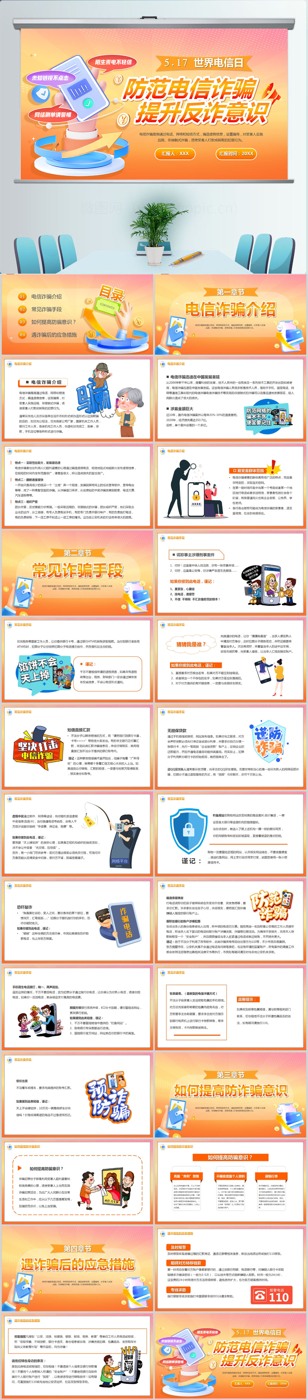 防范电信诈骗提高安全意识主题简约PPT模版
