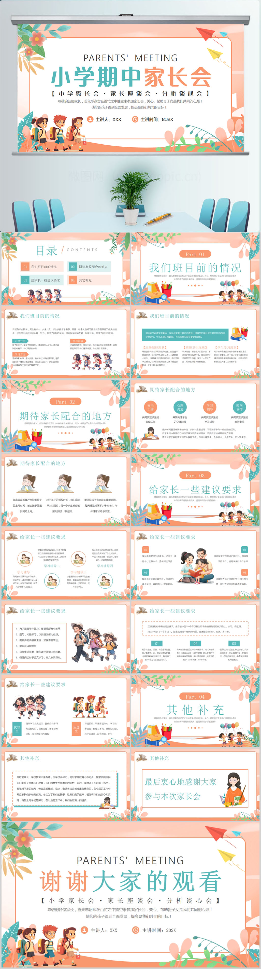 小学中学新学期家长会ppt模板设计