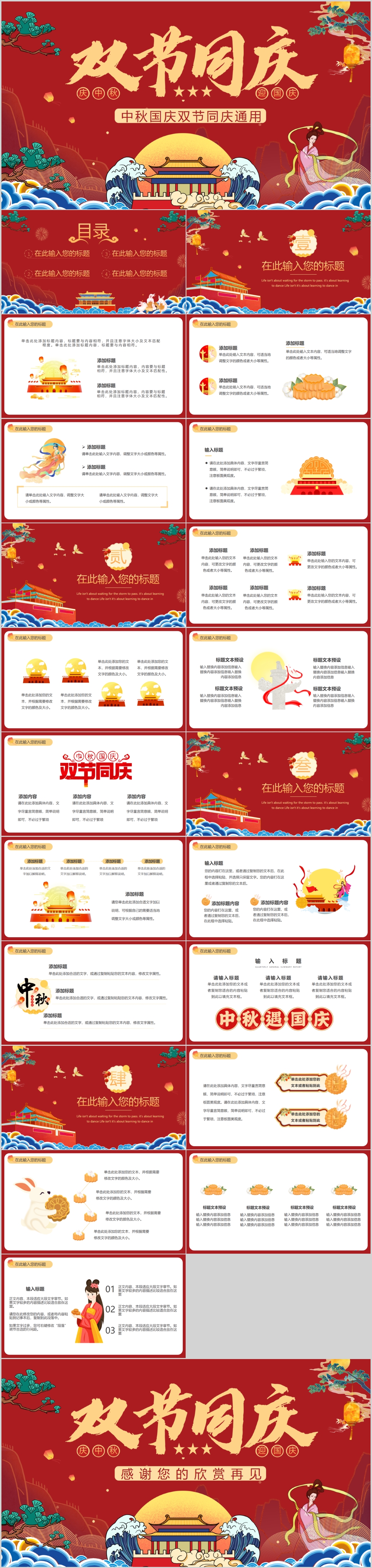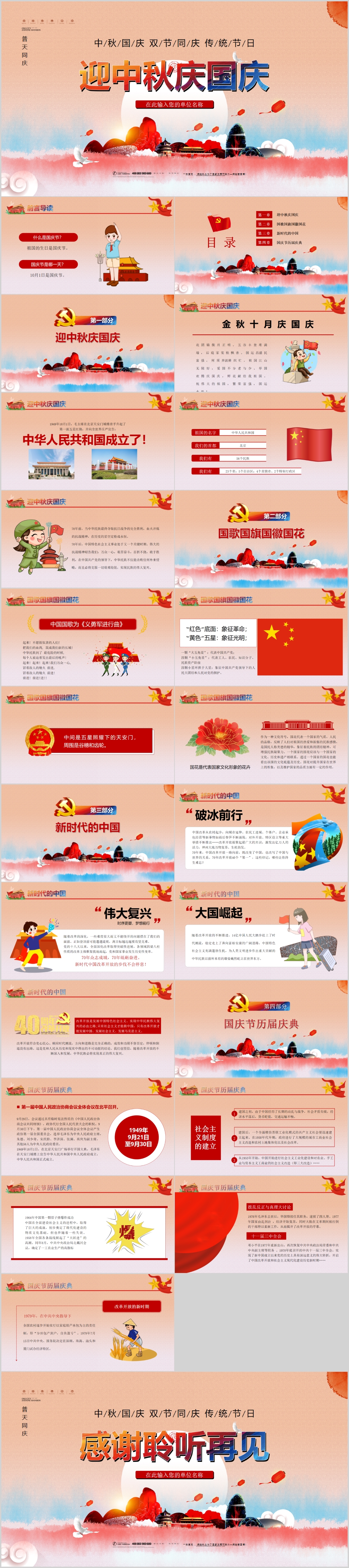 红色喜庆喜迎中秋国庆庆祝国庆周年庆PPT模板