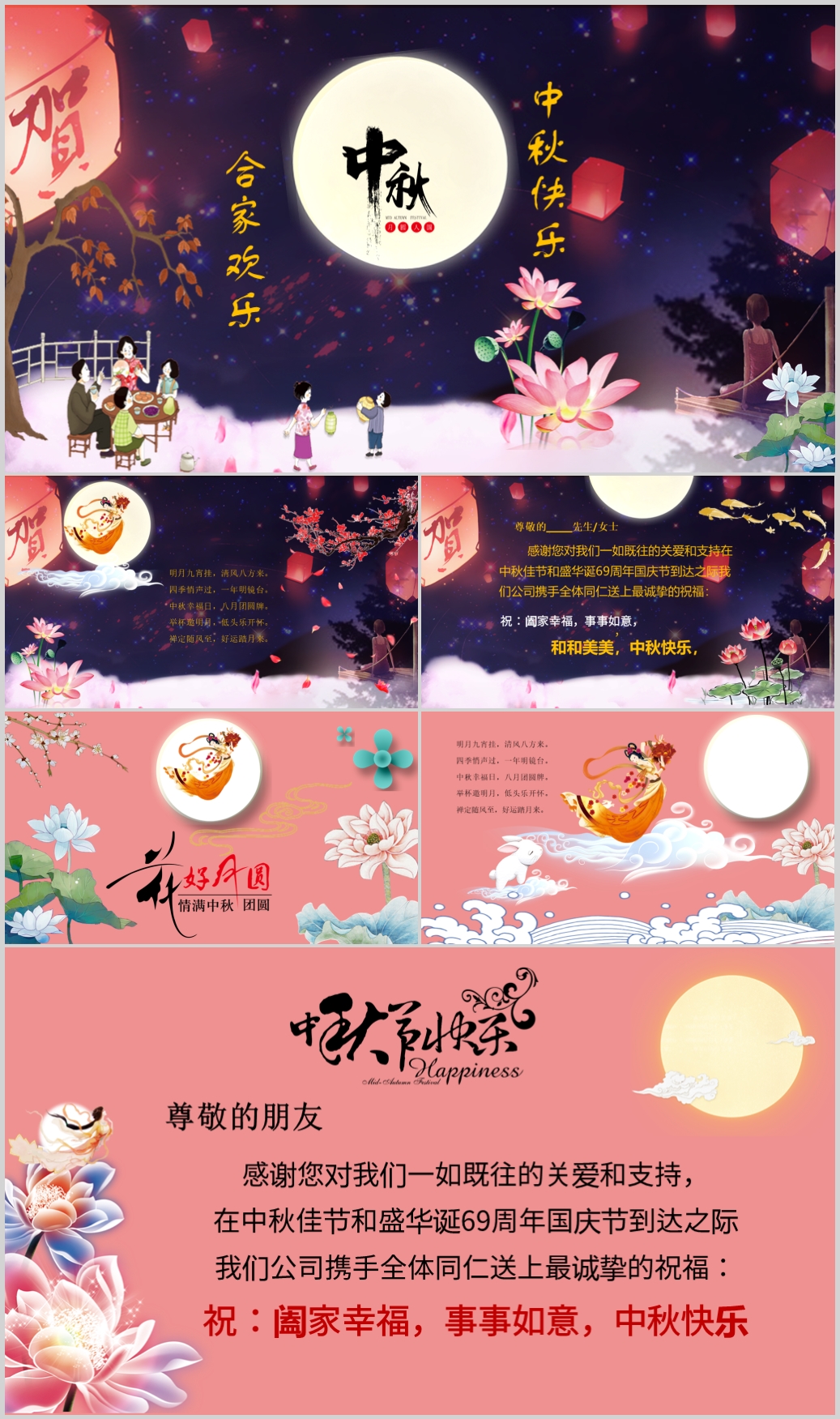 2021大气创意中秋国庆贺卡ppt