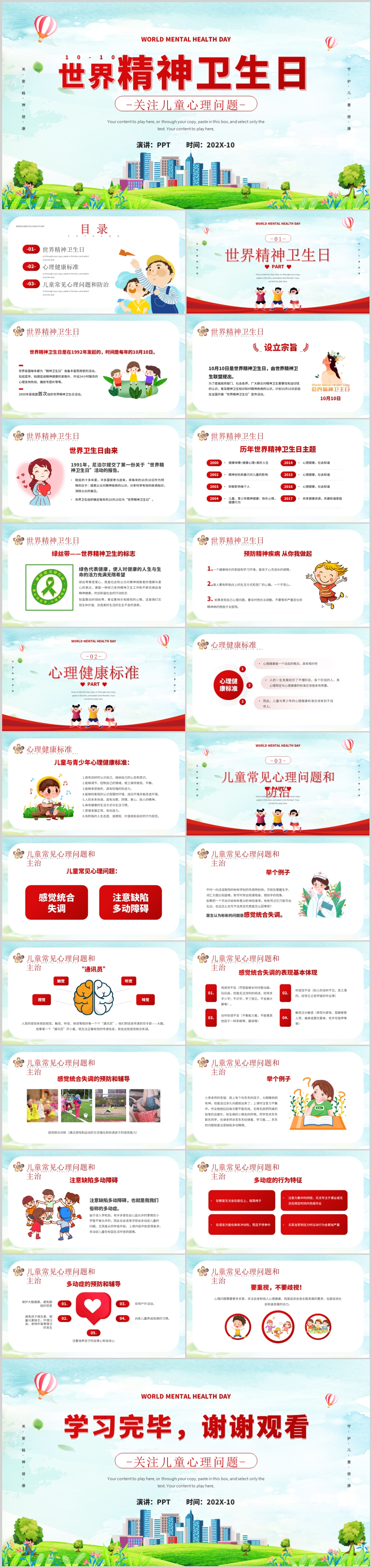 学习认识世界精神卫生日主题班会ppt模板