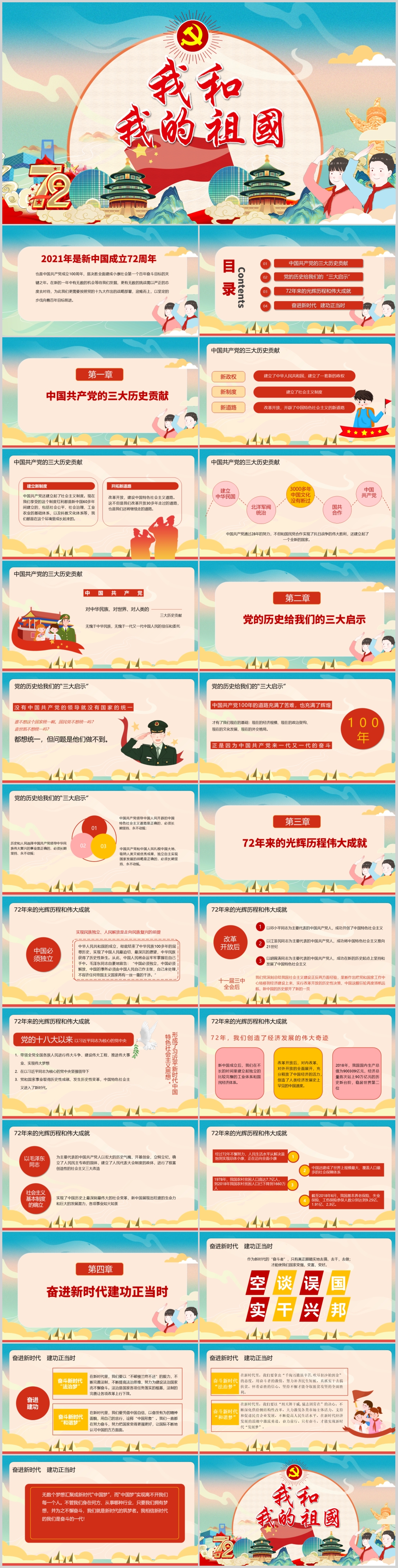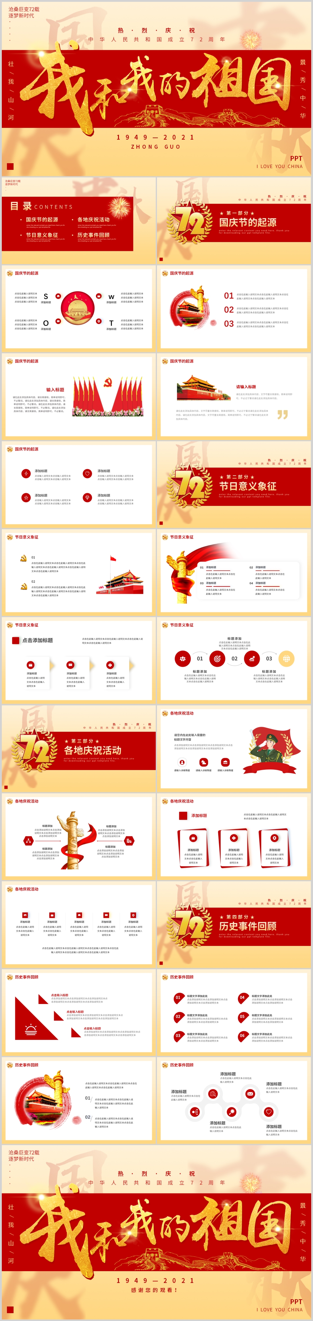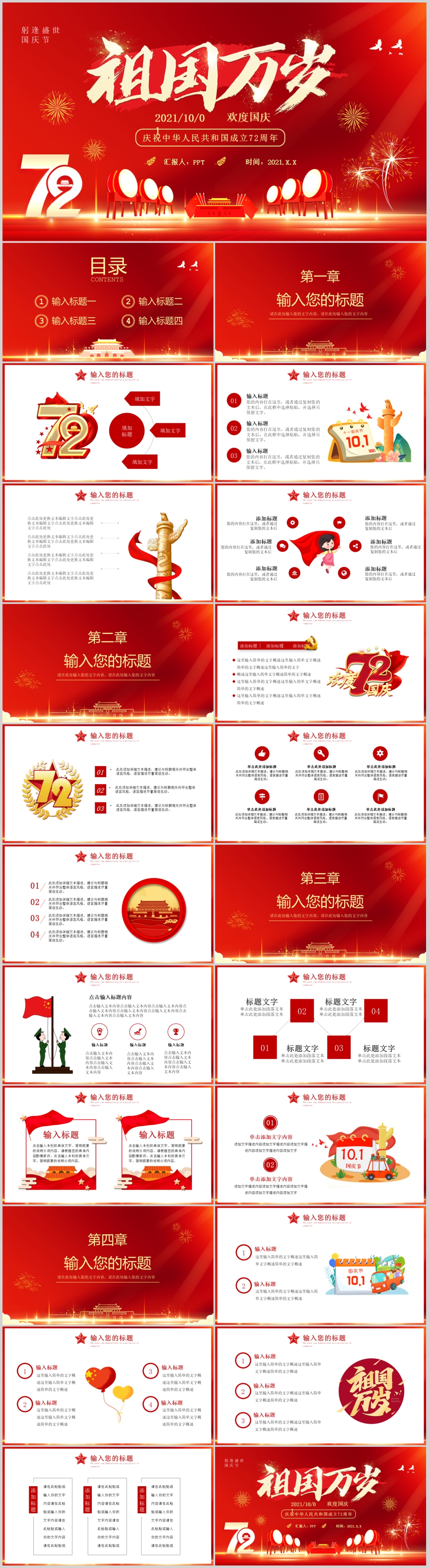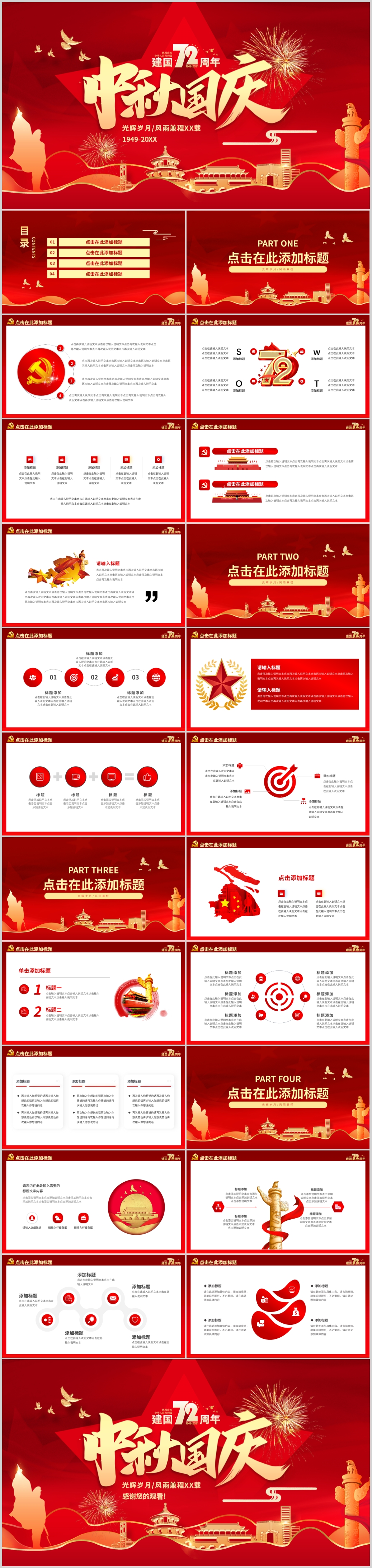 红色72周年国庆节十一国庆PPT模板