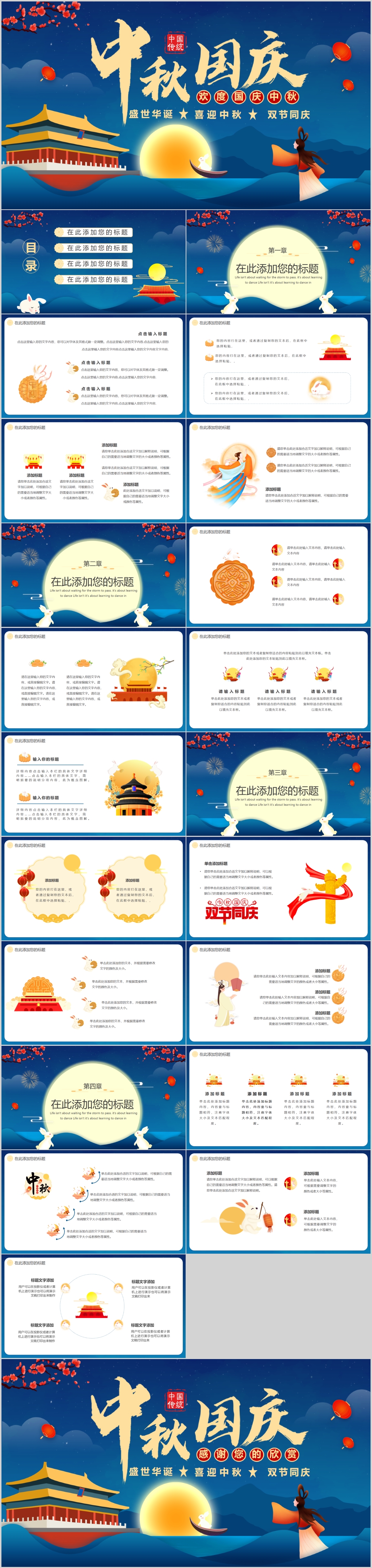 蓝色中国风中秋国庆双节同庆通用PPT模板