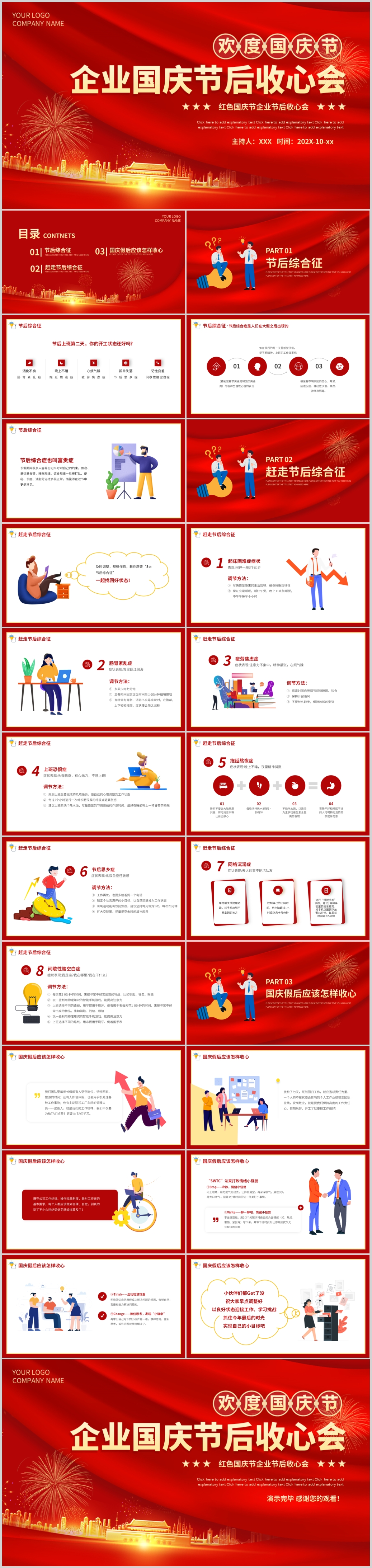 欢度国庆假期后收心会主题课件PPT模板