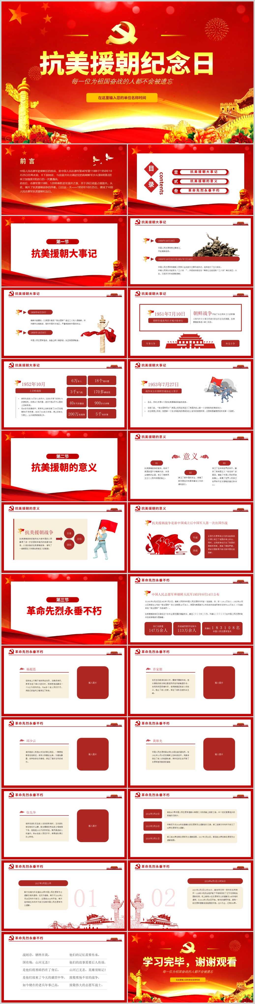 红色抗美援朝纪念日专题主题课件PPT模板