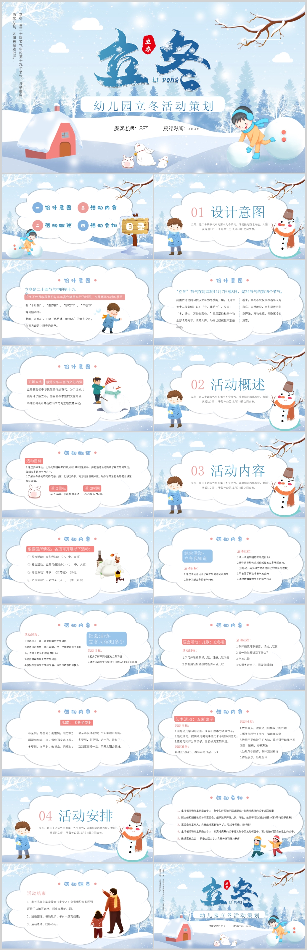二十四节气冬天冬季雪花立冬PPT模板