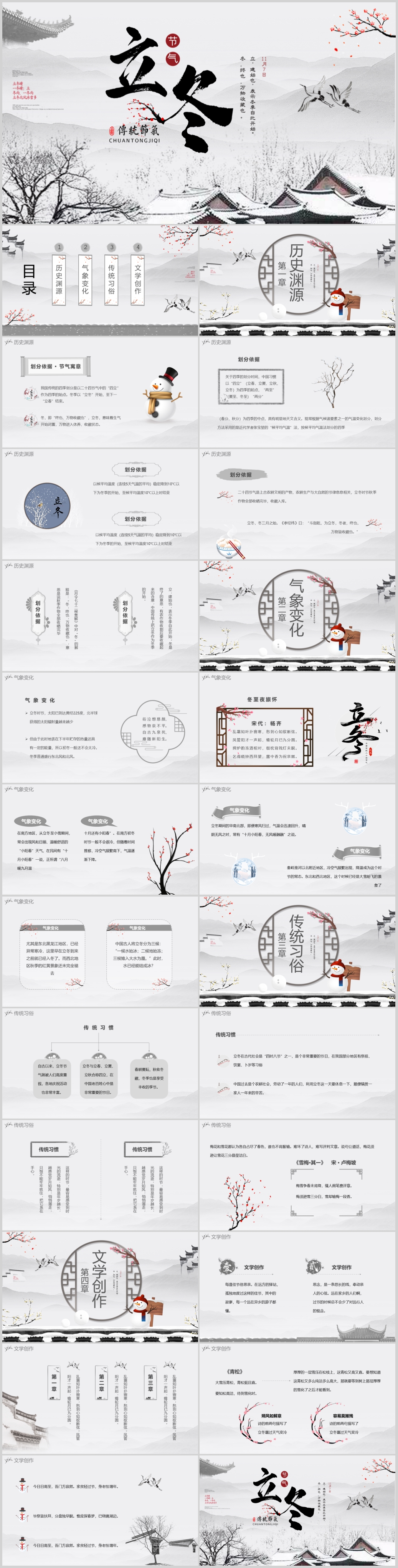 二十四节气冬天冬季雪花立冬主题课件PPT模板