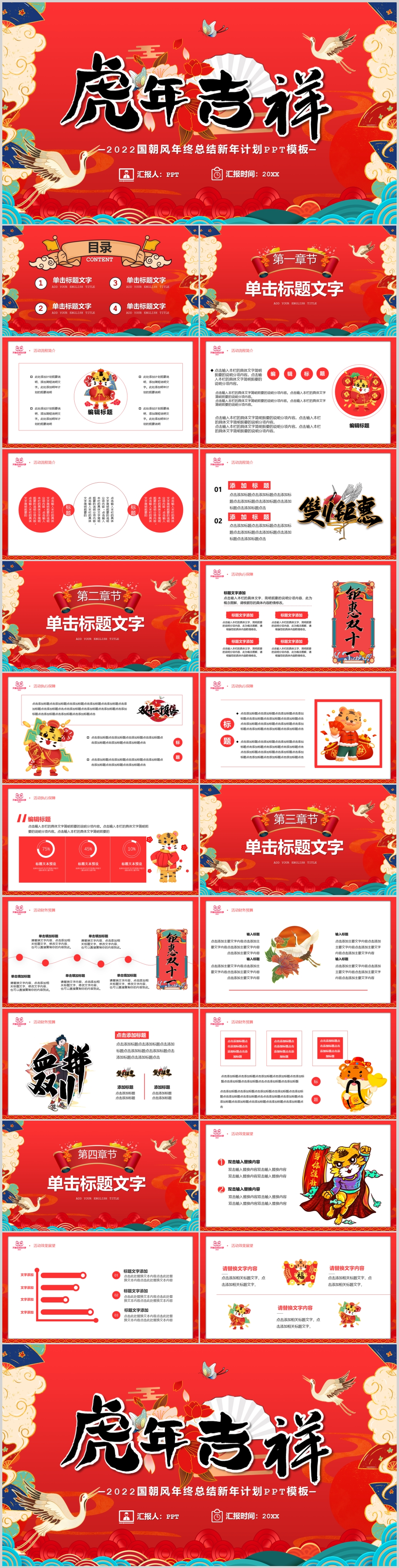 国潮风虎年红色喜庆新年计划年终工作总结ppt模板