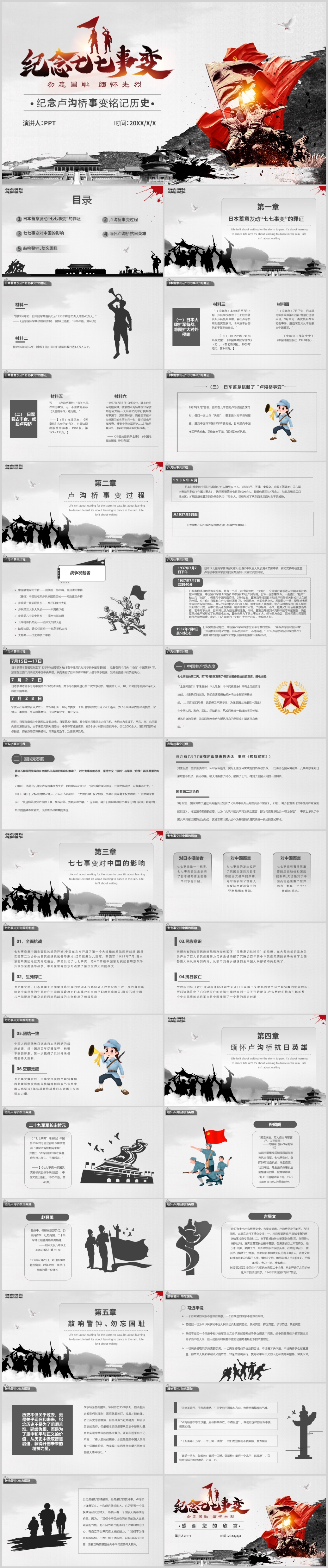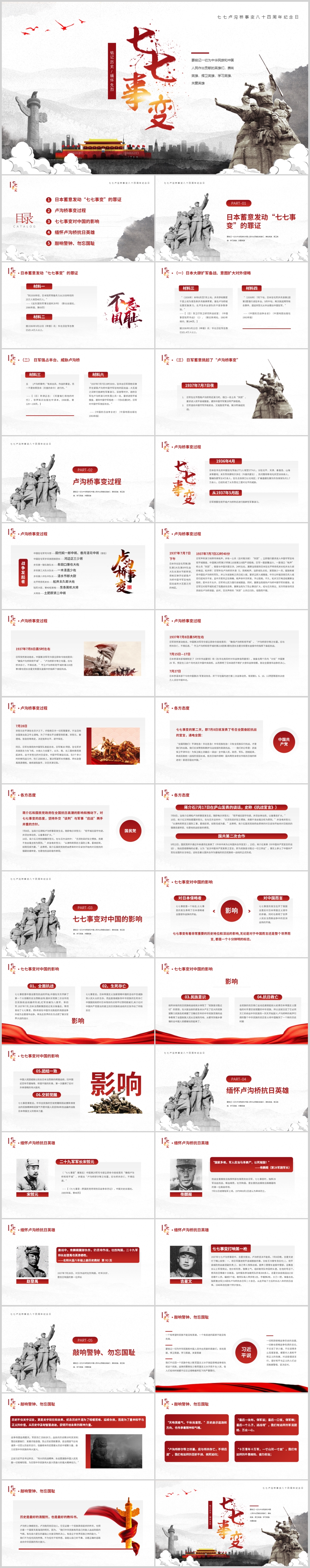 纪念七七卢沟桥事变八十四周年纪念日主题课件PPT模板