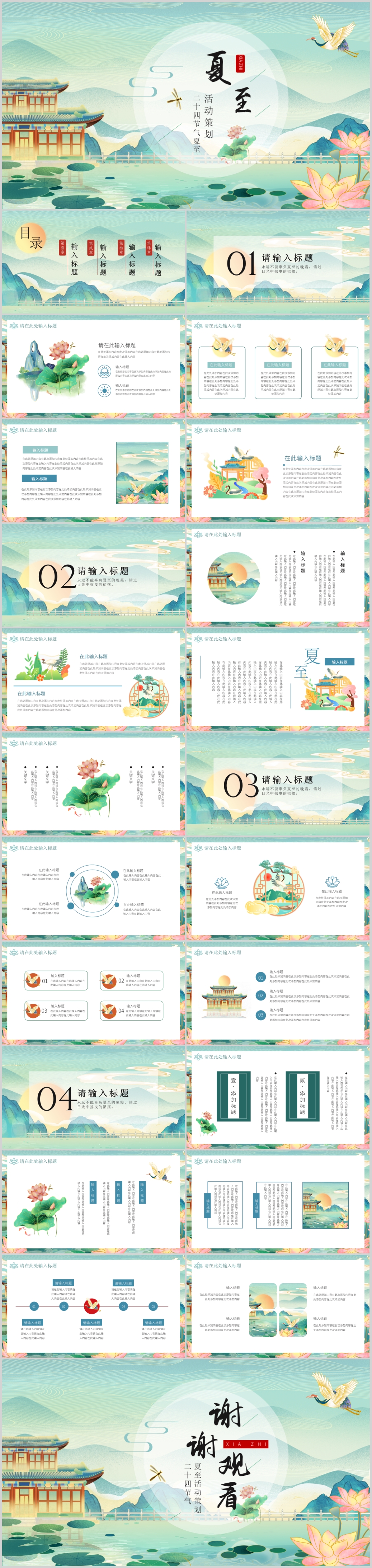 绿色二十四节气夏至节日通用活动主题课件PPT模板
