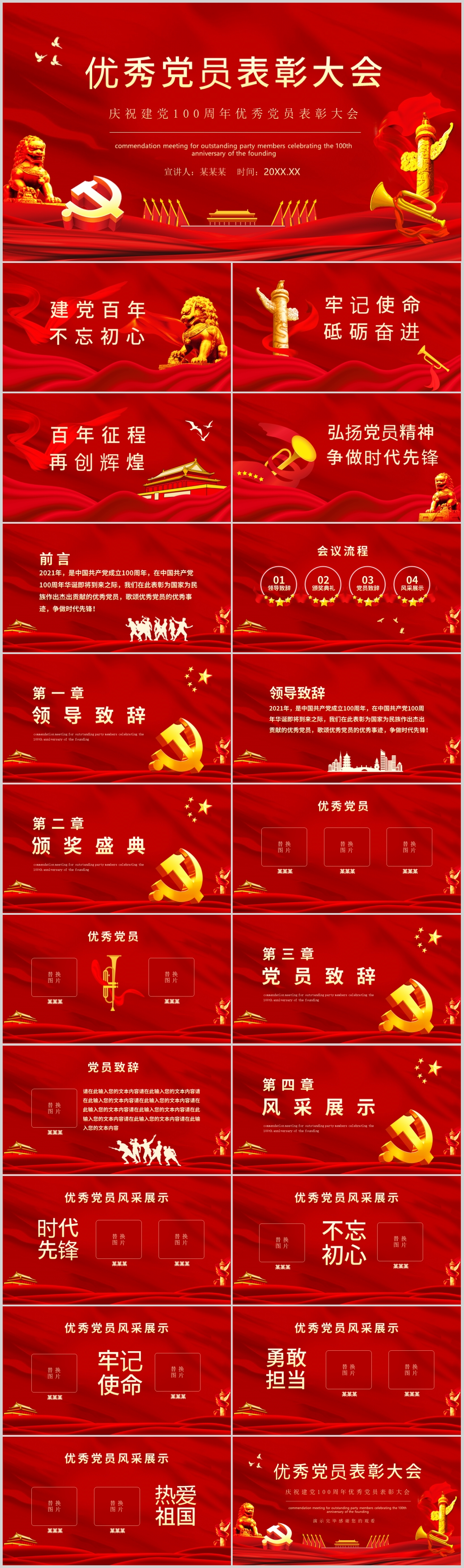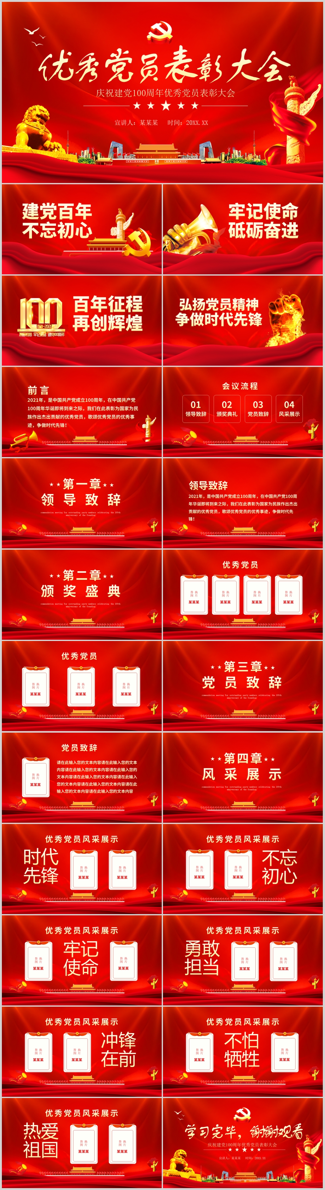 2021建党100周年优秀党员颁奖典礼表彰大会ppt模板