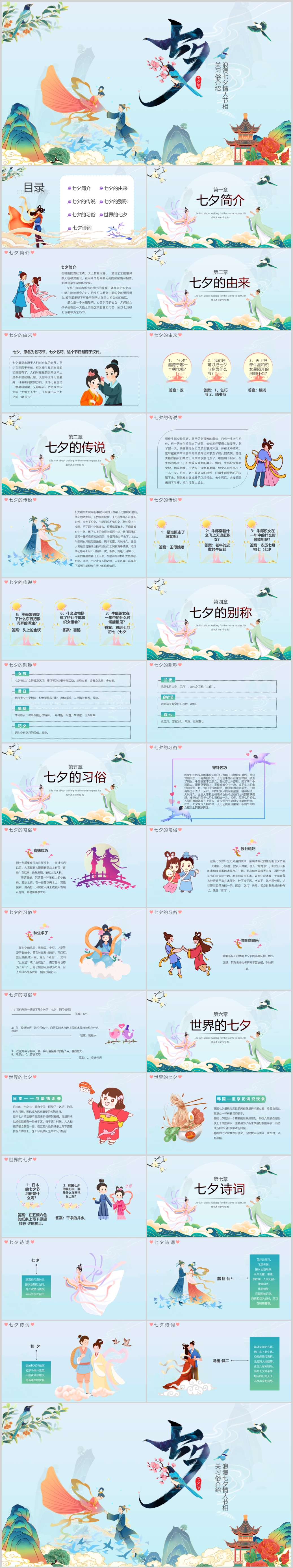 浪漫七夕情人节相关习俗介绍节日由来班会主题课件PPT模板