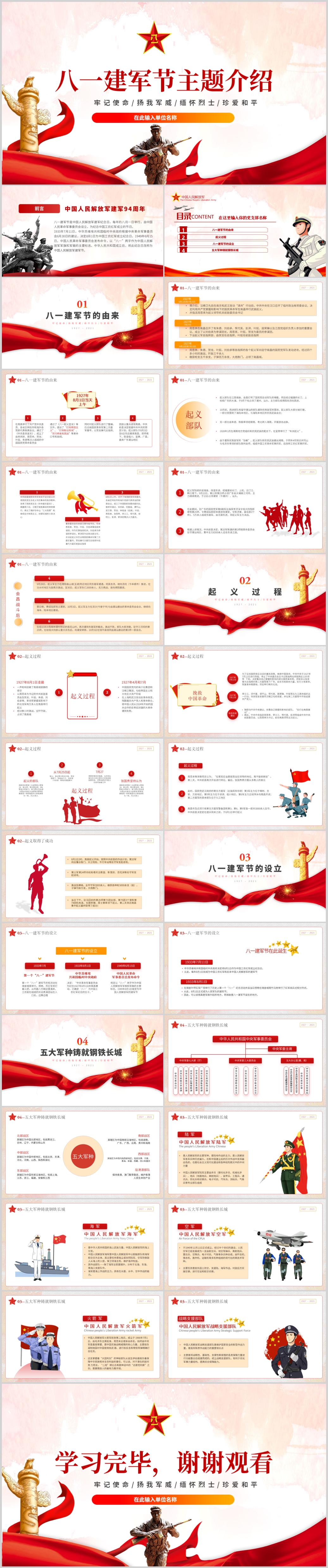 八一建军节由来主题课件介绍PPT模板