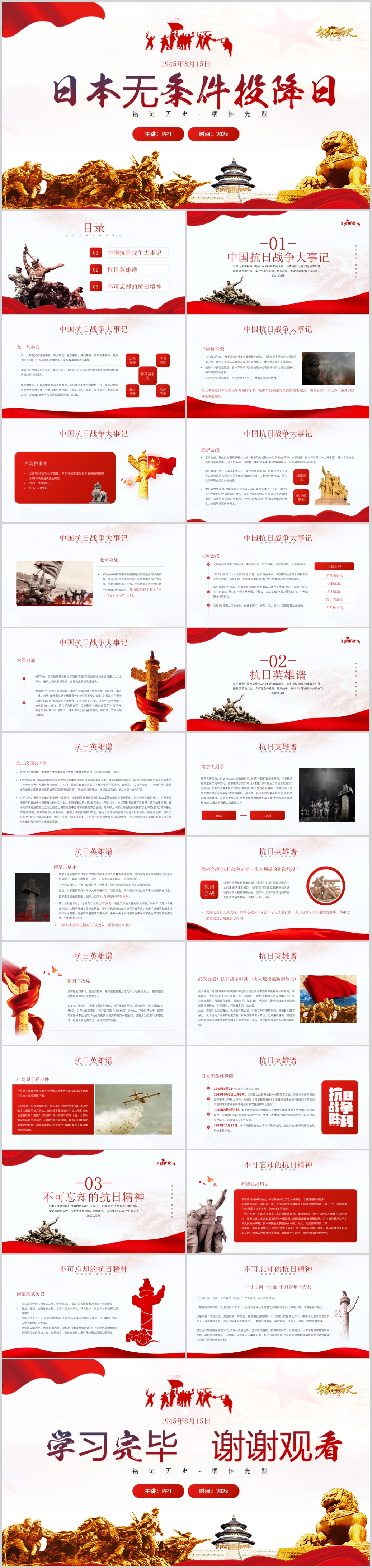 纪念铭记历史抗战胜利日本无条件头像日党课PPT模板