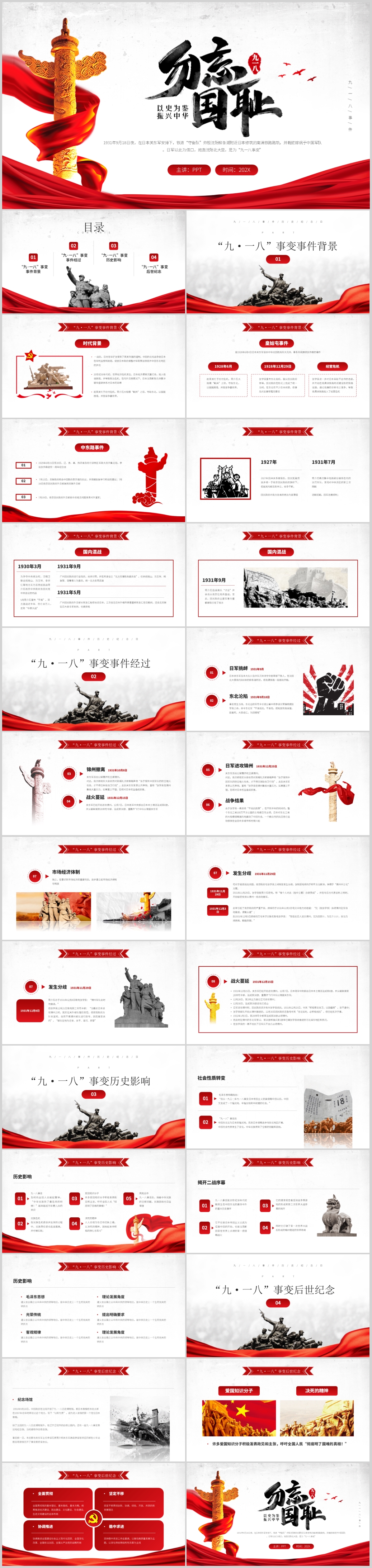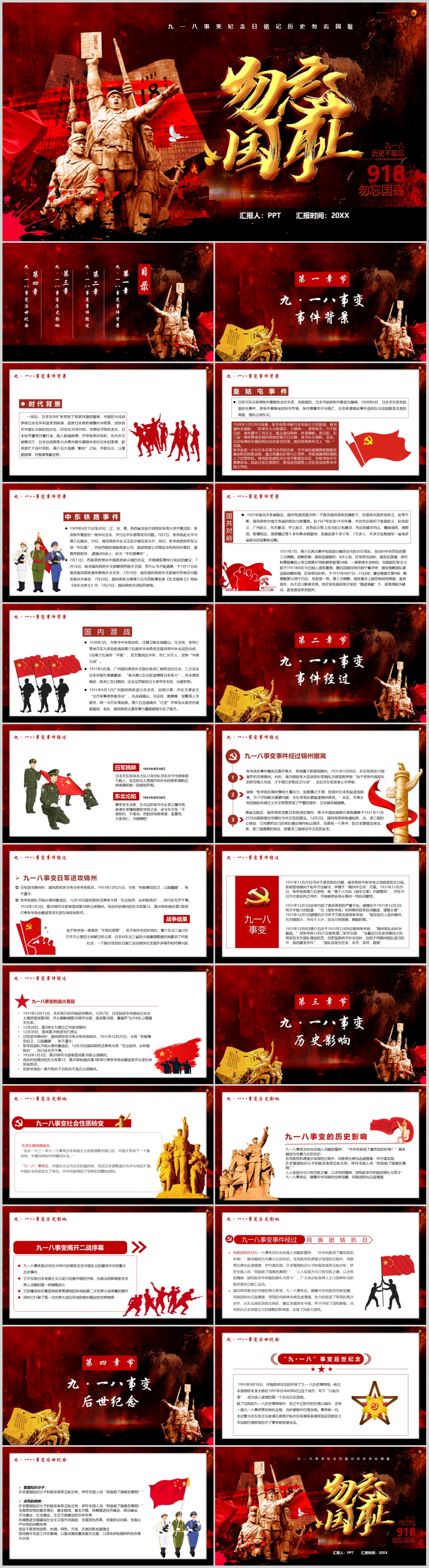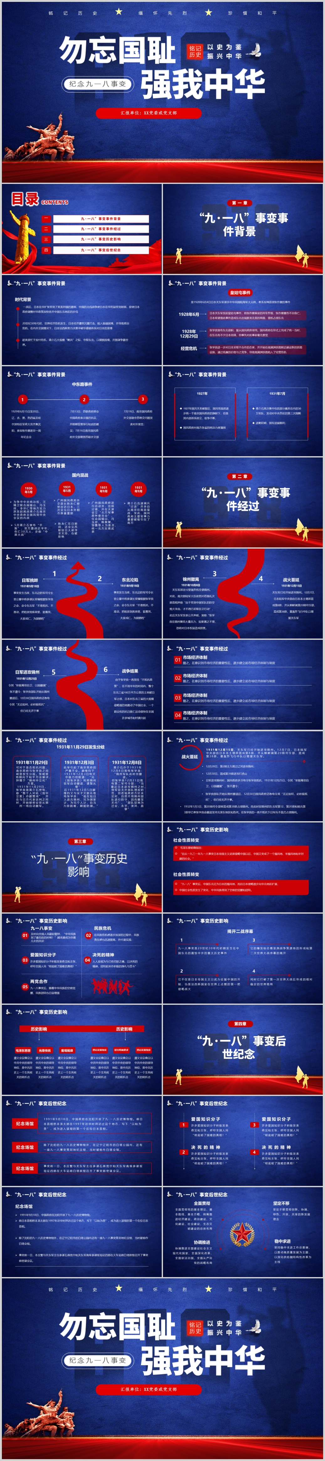勿忘国耻纪念九一八事件主题课件PPT模板