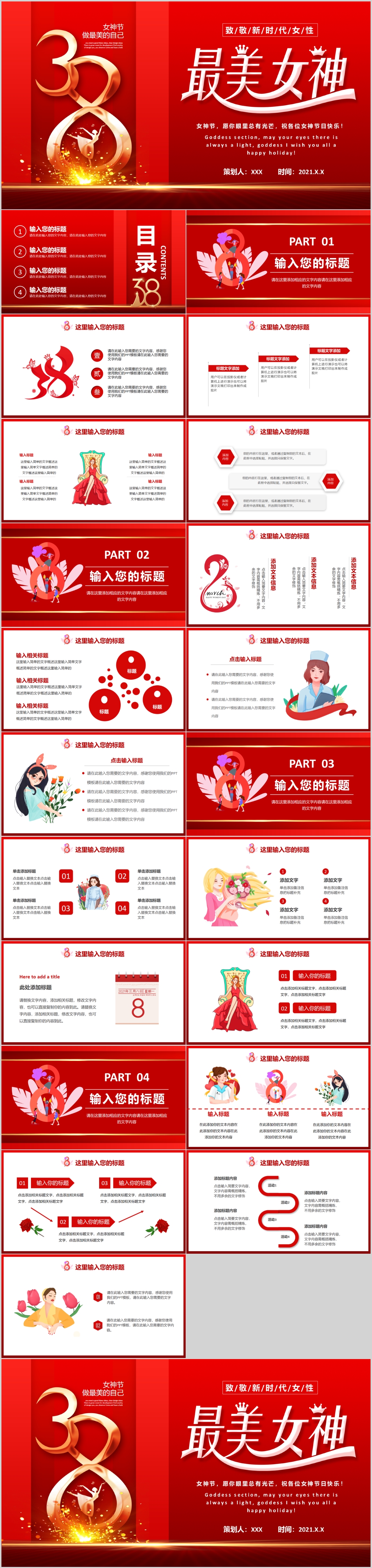 38妇女节女王节女神节三八妇女节妇联女性PPT模板