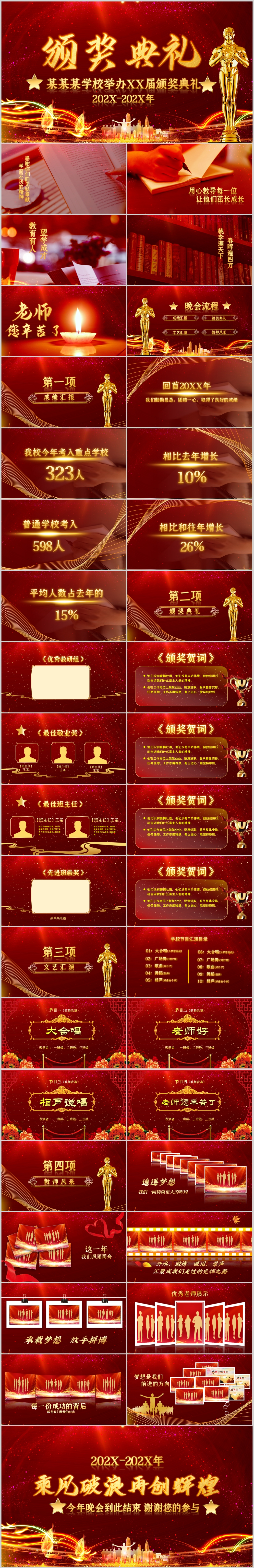 红色喜庆感恩教师节颁奖典礼晚会表彰大会PPT模板