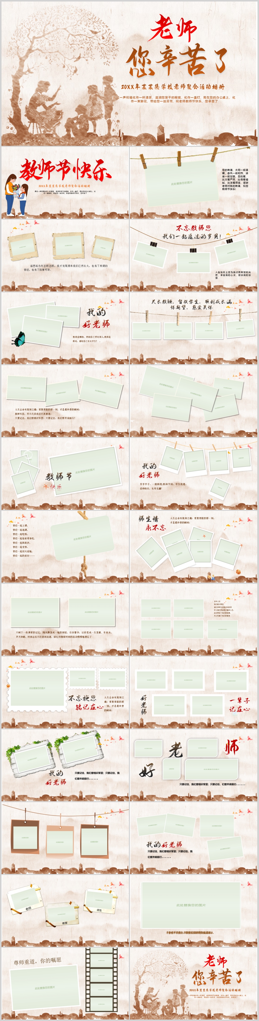 温馨感恩教师节老师您辛苦了表彰贺卡相册PPT模板