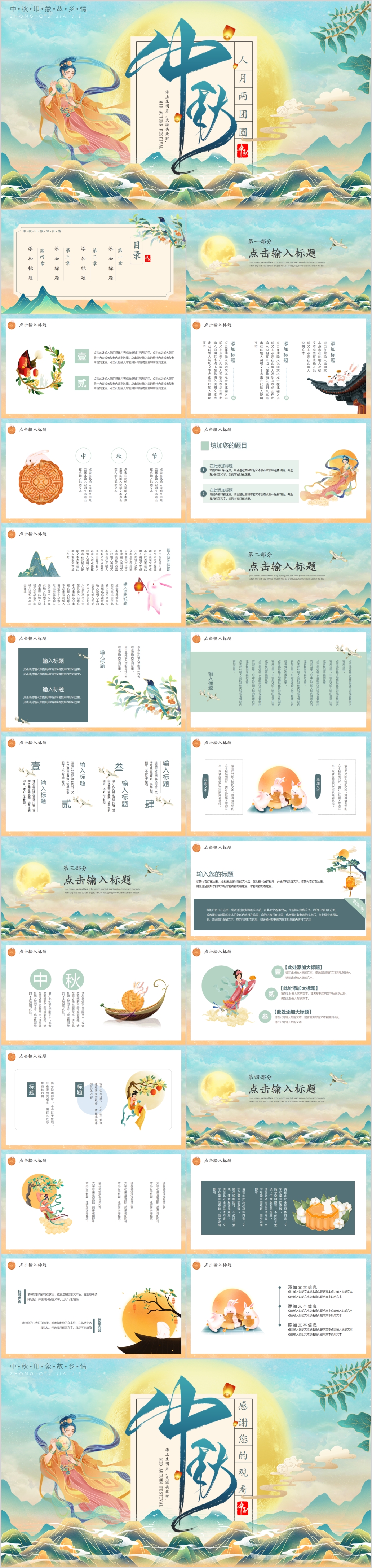 唯美中国风传统节日中秋节主题课件ppt模板
