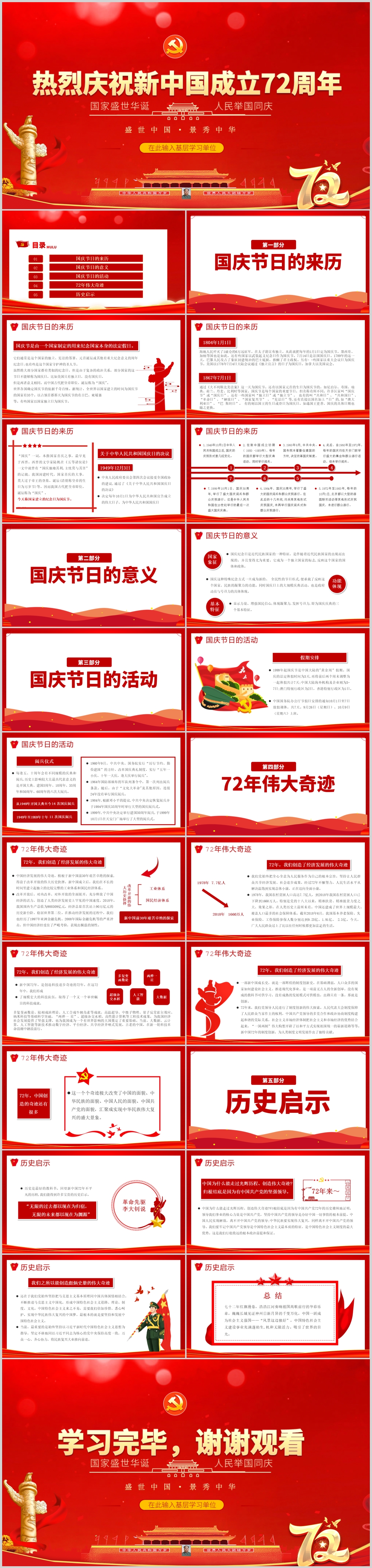 红色十一国庆节新中国成立72周年介绍主题PPT模板