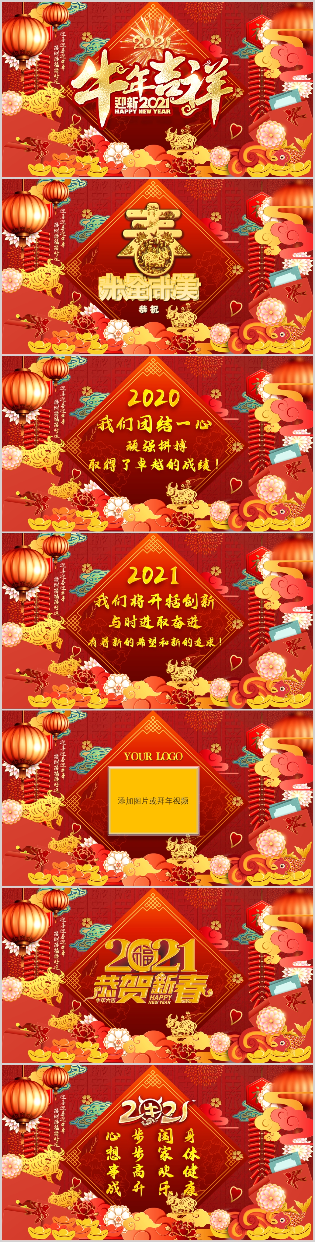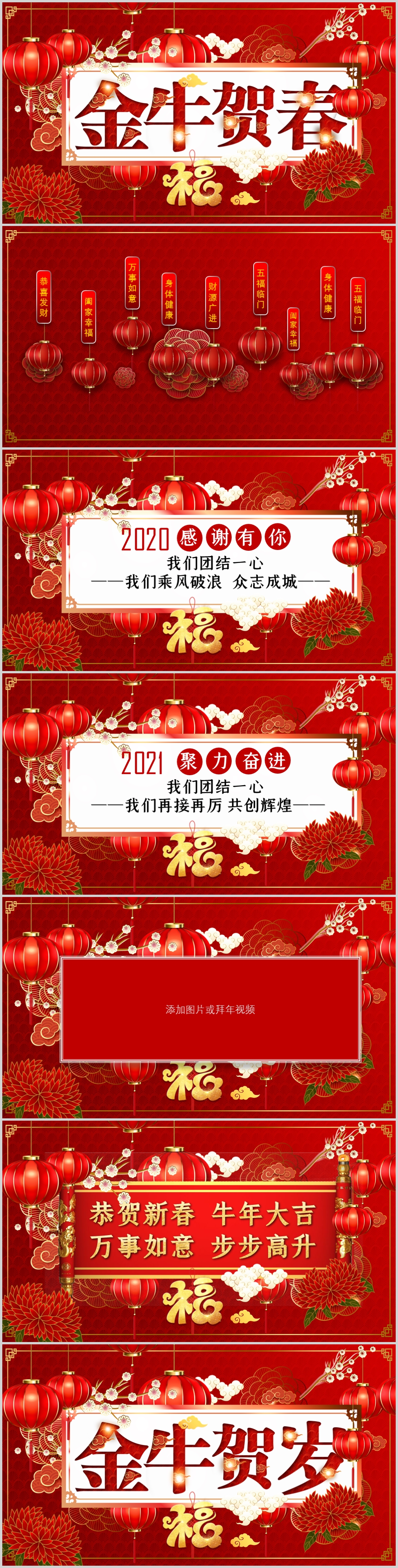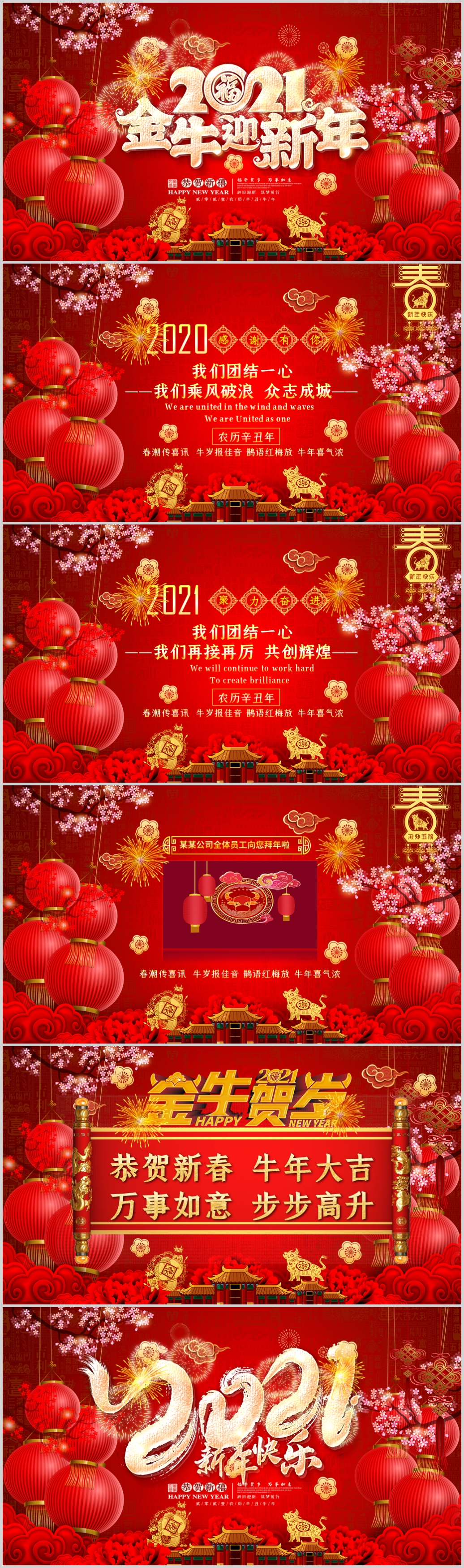 2021牛年吉祥春节贺卡动态PPT模板