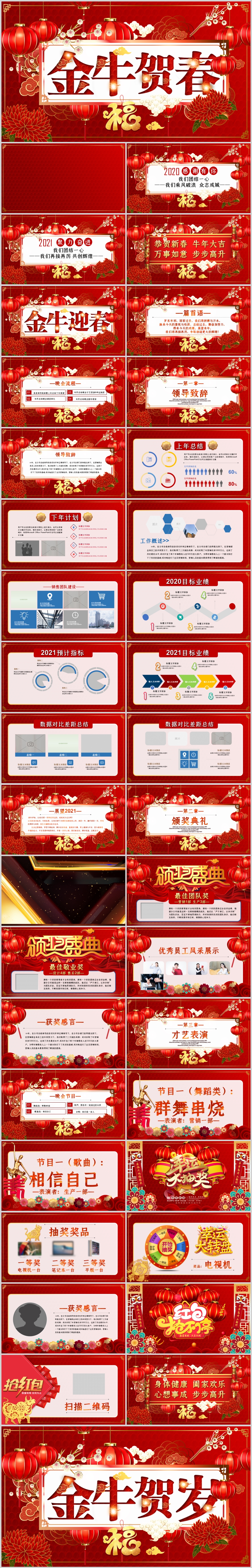 2021中国风喜庆牛年新年春节联欢晚会ppt模板