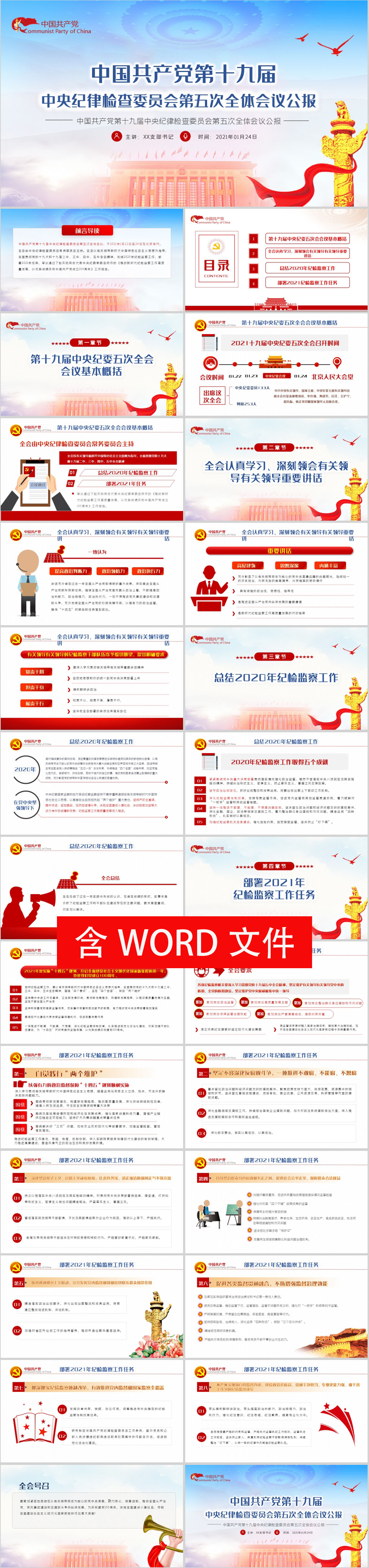 十九届中央纪律检查委员会第五次全体会议公报ppt模板(内含WORD演讲稿)