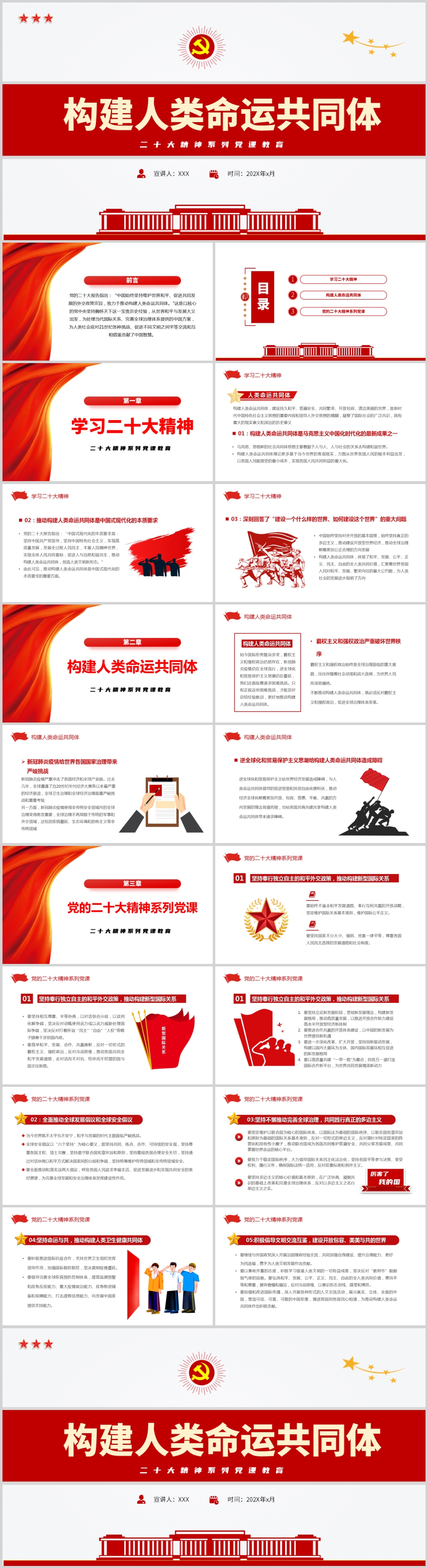 党政风二十大推动构建人类命运共同体PPT模板